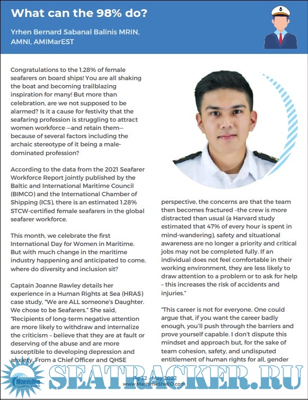 We're also marking the occasion by highlighting women's achievements and contributions, as well as their efforts to usher in a wave of gender equality for a more sustainable future. There are also thoughtprovoking interviews with members of the World Maritime University - Women's Association about combating gender bias. Also presented are DEI best practices and a gentleman's perspective on gender inclusiveness.