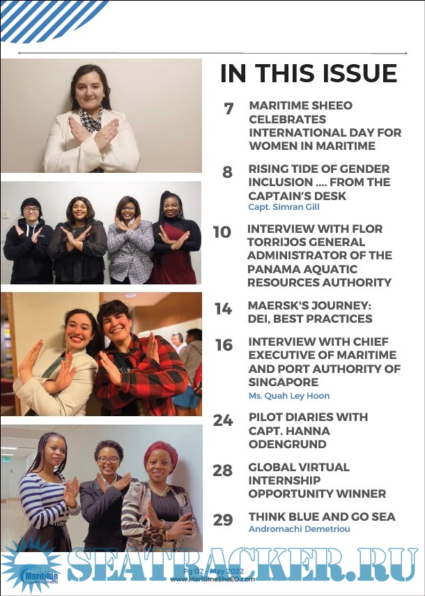 "Pilot Diaries," a now-regular piece, is included in this edition, and we're confident you'll like reading it. More interviews and insightful perspectives from other professional maritime women are also presented.