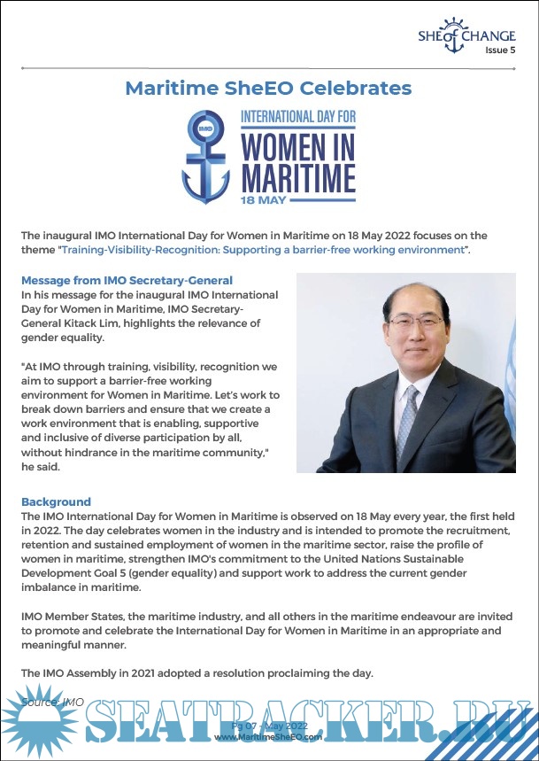 Happy to present the 5th edition of the "She of Change" which features a powerful message from IMO Secretary-General, Mr. Kitack Lim, commemorating "International Day for Women in Maritime".