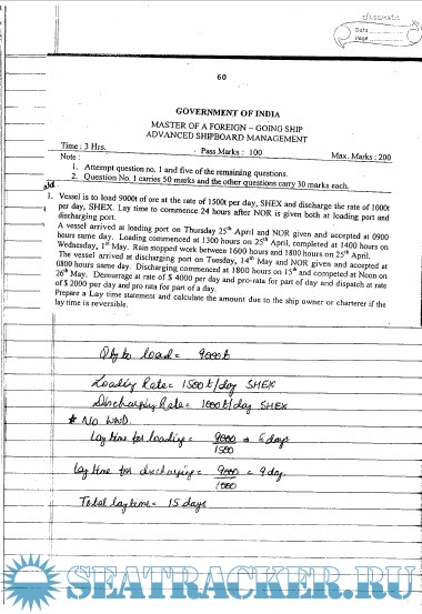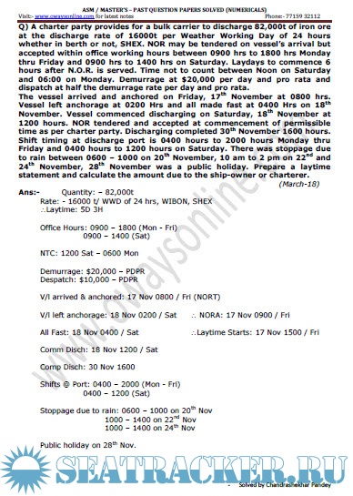 Solved Numericals - Past Question Papers Mercantile Marine Department (MMD), India Examinations for Advanced Ship Management (ASM)