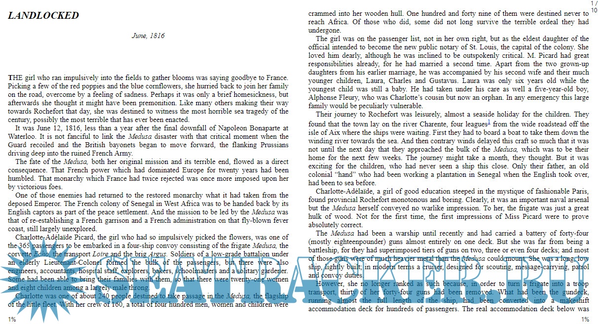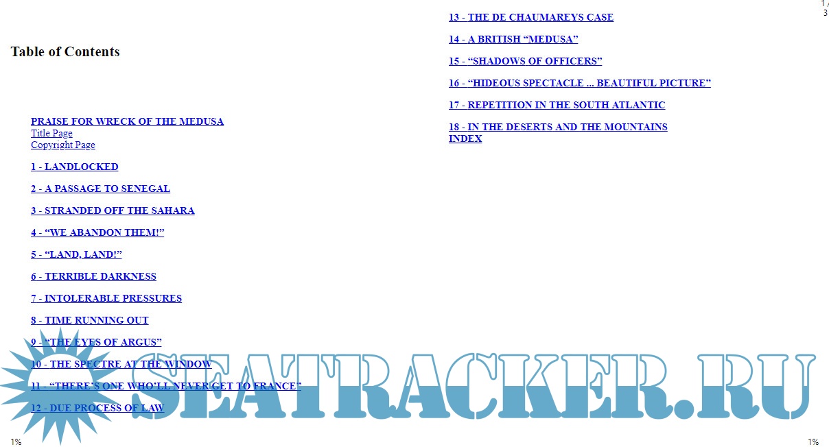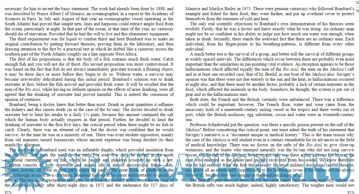 Year: 2007 Language: english Author: Alexander McKee Publisher: Skyhorse Publishing ISBN: 978-1602391864 Format: EPUB Quality: eBook Pages count: 304 Description: In June 1816, the French frigate Medusa departed from Rochefort, bound for the Senegalese port of Saint-Louis. She headed a convoy of three other ships: the storeship Loire, the brig Argus and the corvette Écho. The frigate's mission was to accept the British return of Senegal under the terms of France's acceptance of the Peace of Paris. In an effort to make good time, the Medusa overtook the other ships, but due to poor navigation it drifted 100 miles off course and ran aground on a sandbank off the West African coast, near today's Mauritania. Efforts to free the ship failed, so, the frightened passengers and crew attempted to travel the 60 miles to the African coast in the frigate's six boats. Although the Medusa was carrying 400 people, there was space for only about 250 in the boats. At least 146 men and one woman were piled onto a hastily built raft, that partially submerged once it was loaded. Seventeen crew members opted to stay aboard the grounded Medusa. The captain and crew aboard the other boats intended to tow the raft, but after only a few miles the raft was turned loose. For sustenance the crew of the raft had only a bag of ship's biscuit, two casks of water, and six casks of wine. According to critic Jonathan Miles, the raft carried the survivors “to the frontiers of human experience. Crazed, parched and starved, they slaughtered mutineers, ate their dead companions and killed the weakest." After 13 days, the raft was rescued by the Argus by chance. By this time only 15 men were still alive; the others had been killed or thrown overboard by their comrades, died of starvation, or had thrown themselves into the sea in despair. The Medusa’s story entered nautical lore as one of history’s most horrific nautical misadventures.