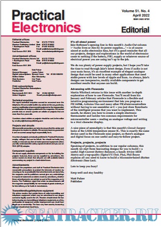 Year: 2022 Language: english Author: Electron Publishing Edition: Vol. 51 / No. 4 | April Format: PDF Quality: eBook Pages count: 76 Description: The UK’s premier electronics and computing maker magazine.