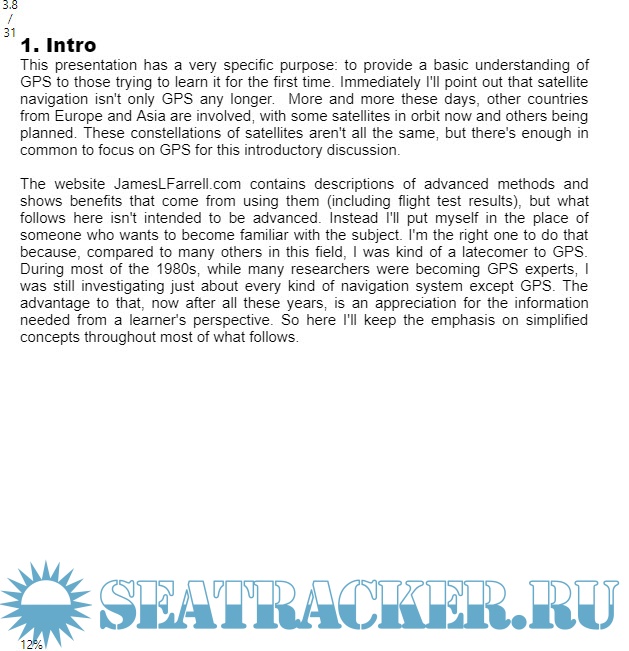 Description: This presentation provides a basic understanding of GPS for those trying to learn it for the first time. Although satellite navigation now includes constellations from Europe and Asia, all have enough in common to focus on GPS for introductory discussion. Material was selected and organized with a a learner's perspective in mind. for a "straight-to-the-point" exposition with little or no mathematics and, rather than an extensive bibliography, a few few URLs that can be followed towards a wealth of further sources for those interested.