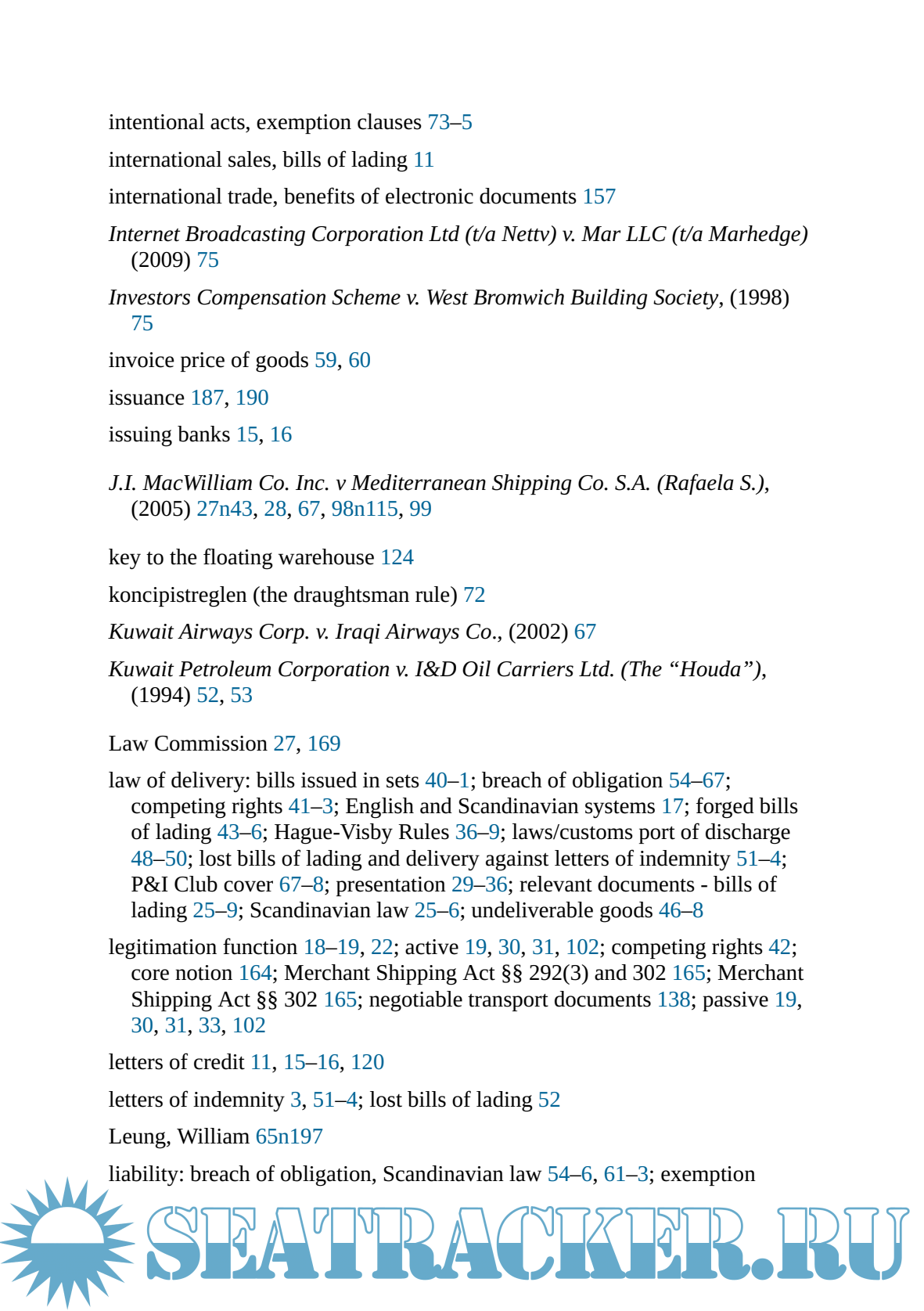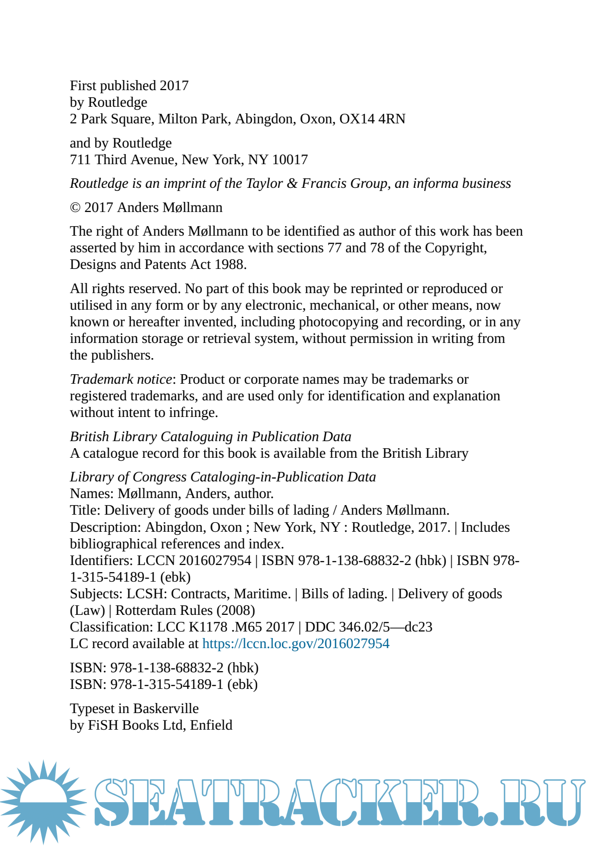 Year: 2017 Language: english Author: Anders Møllmann Genre: Reference book Publisher: Routledge is an imprint of the Taylor & Francis Group Edition: 1 ISBN: 978-1-315-54189-1 Format: PDF Quality: eBook Pages count: 269 Description: Probably the core characteristic of a bill of lading is that the original bill of lading must be presented at the port of destination for a consignee to be entitled to delivery of the goods and for the carrier to get a good discharge of its delivery obligation by delivering the goods to said consignee. This notion is accepted virtually worldwide, but the more precise content of the “presentation rule” differs from jurisdiction to jurisdiction. Furthermore, and of importance, the legal basis establishing the “presentation rule” differs. With the technological advances in maritime transport as well as in communications technology and the emergence of more complicated trading patterns, a system where a specific tangible piece of paper issued at the port of loading has to be presented at the port of discharge to obtain delivery of the goods seems almost archaic and can obviously create problems. Thus, in practice very often – especially in some trades such as the oil trade – the bill of lading is not available at the port of discharge when the ship is ready to deliver the cargo. The book will first analyse the “presentation rule”, its finer contents and its legal basis. It will then go on with (legal) analyses of three developments and responses to the problems that the bill of lading system gives rise to in practice, viz. the commercial, the international legislature’s, and the technological response. The commercial response analysed here consists of contractual exemption or limitation clauses in the bill of lading set up as a defence against claims for misdelivery. The international legislature’s response denotes the adoption of the Rotterdam Rules which as the first international convention on carriage of goods by sea includes elaborate rules on delivery of the goods. Finally, the technological response denotes the possibility of using electronic (equivalents of) bills of lading. The analyses will include a comparative approach examining both English and Scandinavian law to elucidate the issues with greater clarity