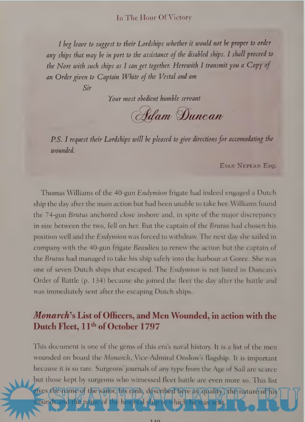 Year: 2013 Language: english Author: Sam Willis Genre: History Publisher: W. W. Norton & Company ISBN: 978-0-393-24314-7 Format: PDF Quality: Scanned pages + text layer Pages count: 396 Description: Between 1794 and 1815 the Royal Navy repeatedly crushed her enemies at sea in a period of military dominance that equals any in history. When Napoleon eventually died in exile, the Lords of the Admiralty ordered that the original dispatches from seven major fleet battles - The Glorious First of June (1794), St Vincent (1797), Camperdown (1797), The Nile (1798), Copenhagen (1801), Trafalgar (1805) and San Domingo (1806) - should be gathered together and presented to the Nation. These letters, written by Britain's admirals, captains, surgeons and boatswains and sent back home in the midst of conflict, were bound in an immense volume, to be admired as a jewel of British history. Sam Willis, one of Britain's finest naval historians, stumbled upon this collection by chance in the British Library in 2010 and soon found out that only a handful of people knew of its existence. The rediscovery of these first-hand reports, and the vivid commentary they provide, has enabled Willis to reassesses the key engagements in extraordinary and revelatory detail, and to paint an enthralling series of portraits of the Royal Navy's commanders at the time. In a compelling and dramatic narrative, In the Hour of Victory tells the story of these naval triumphs as never before, and allows us to hear once more the officer's voices as they describe the battles that made Britain great.