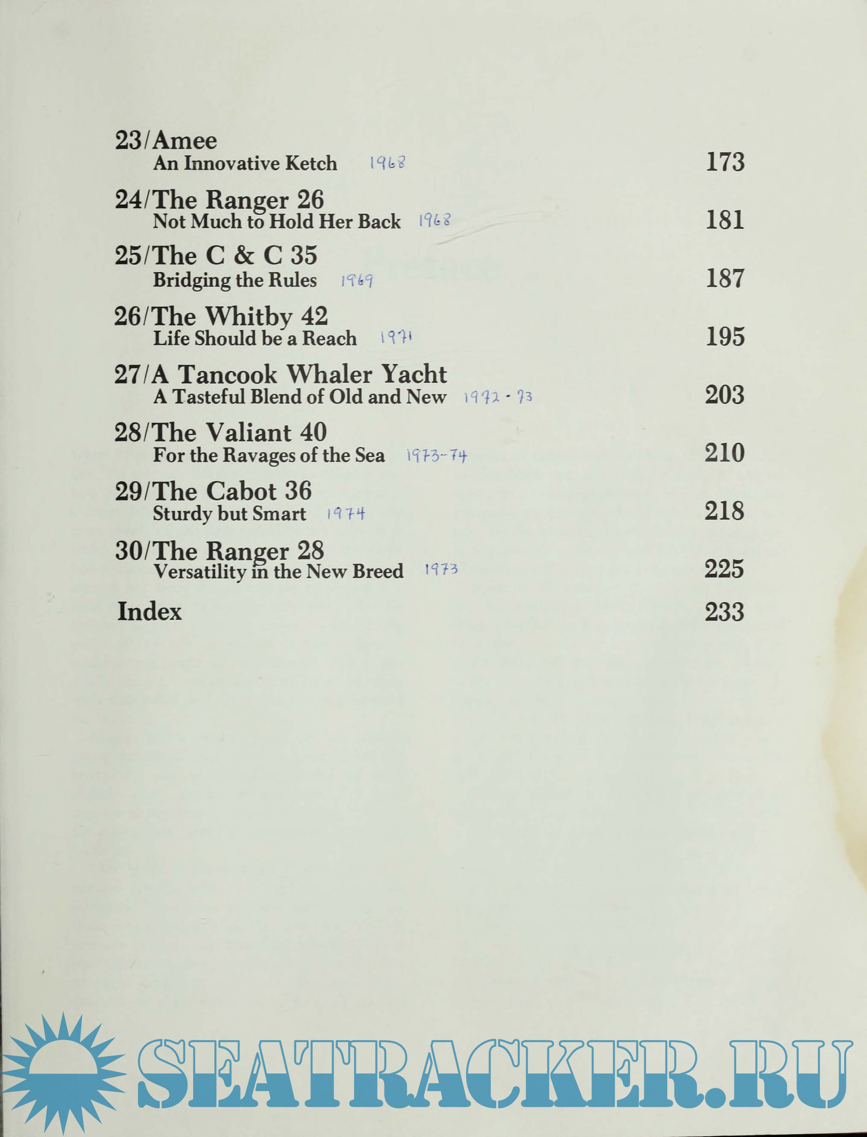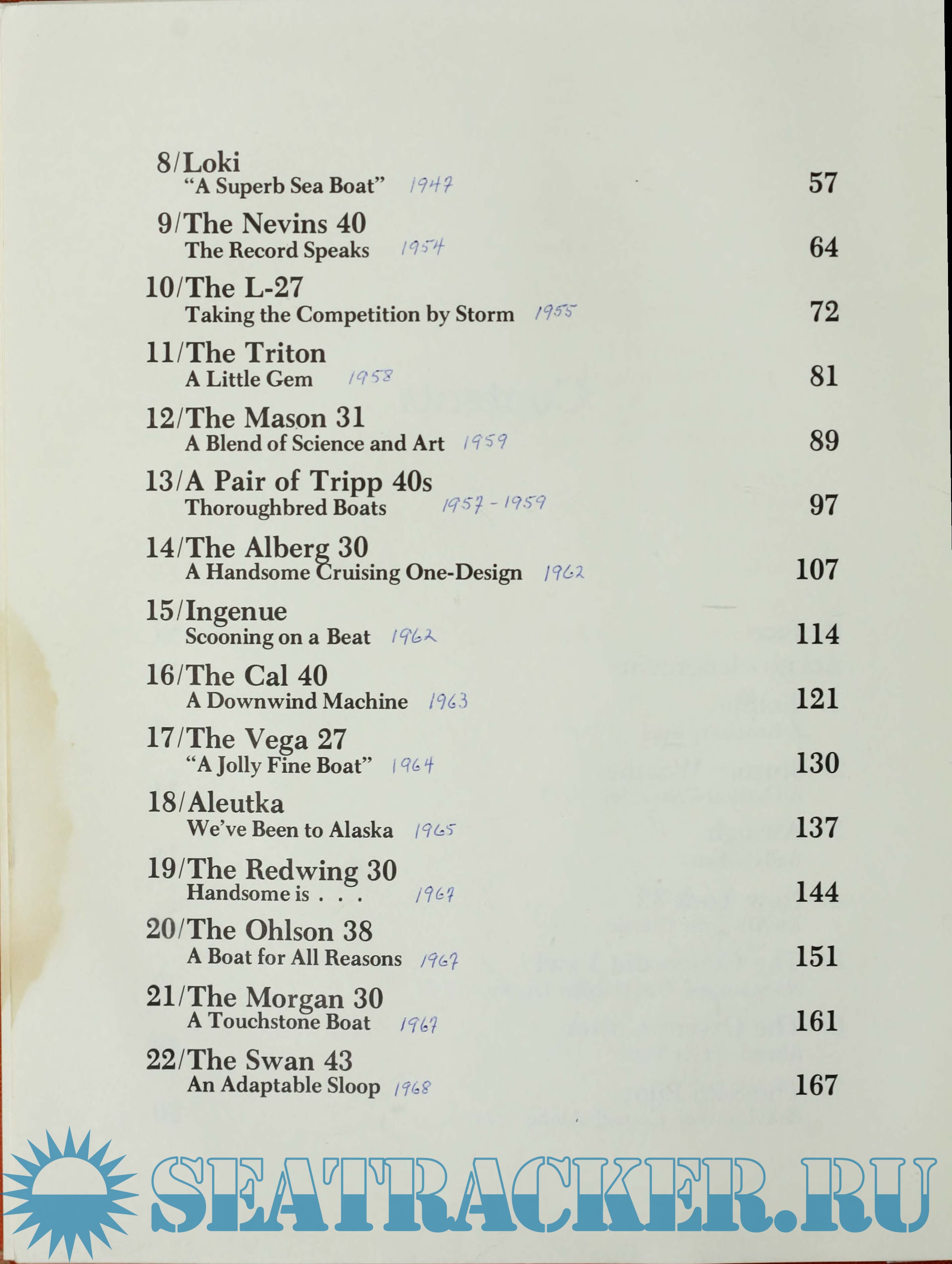 Year: 1979 Language: english Author: Richard Henderson Genre: Reference book Publisher: Intl Marine Pub Co Edition: First ISBN: 0-87742-112-9 Format: PDF Quality: Scanned pages Pages count: 262 Description: From the author: This book is about some of the craft I've become familiar with, and they are among my favorites. There is no common denominator for these boats except that they are smart-sailing, versatile cruisers, and many are considered classics. Of course, compromises are a necessary fact of yacht design as well as of life, and certain qualities of these boats are accentuated at the expense of others. I don't think that the yachts in this book are seriously deficient in any respect, but minor weaknesses in one aspect are compensated by strengths in other areas. At any rate, all the boats in this book are good or great, in my humble opinion, and I hope my overall admiration will be apparent to the reader. Some of the qualities I think are important are: seaworthiness, sailing ability, ease of handling, comfort, and looks. Seaworthiness should be a prime consideration, because a lack of it could endanger the lives of the crew. Now, I don't claim that all the boats on these pages are rugged offshore passagemakers, but they are basically safe for their intended design purpose when well handled. When and if there is a lack of safety features I consider important, the deficiency will be pointed out. Additional info: PDF & EPUB