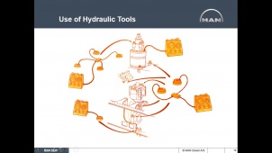 Year: 2007 Language: english Author: MAN B&W Format: PPT Quality: Photo of pages Pages count: 60 Description: Instruction books Mention Hydraulic Tools. Special tools. Tools for Cylinder cover, Piston and Liner Tools for Cross Head Tools for Main Bearing ME - Tools Safety.