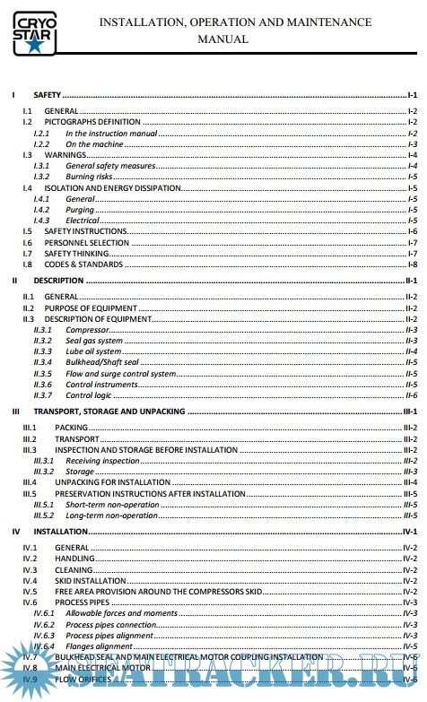 These instructions include installation, operation, maintenance and preservation