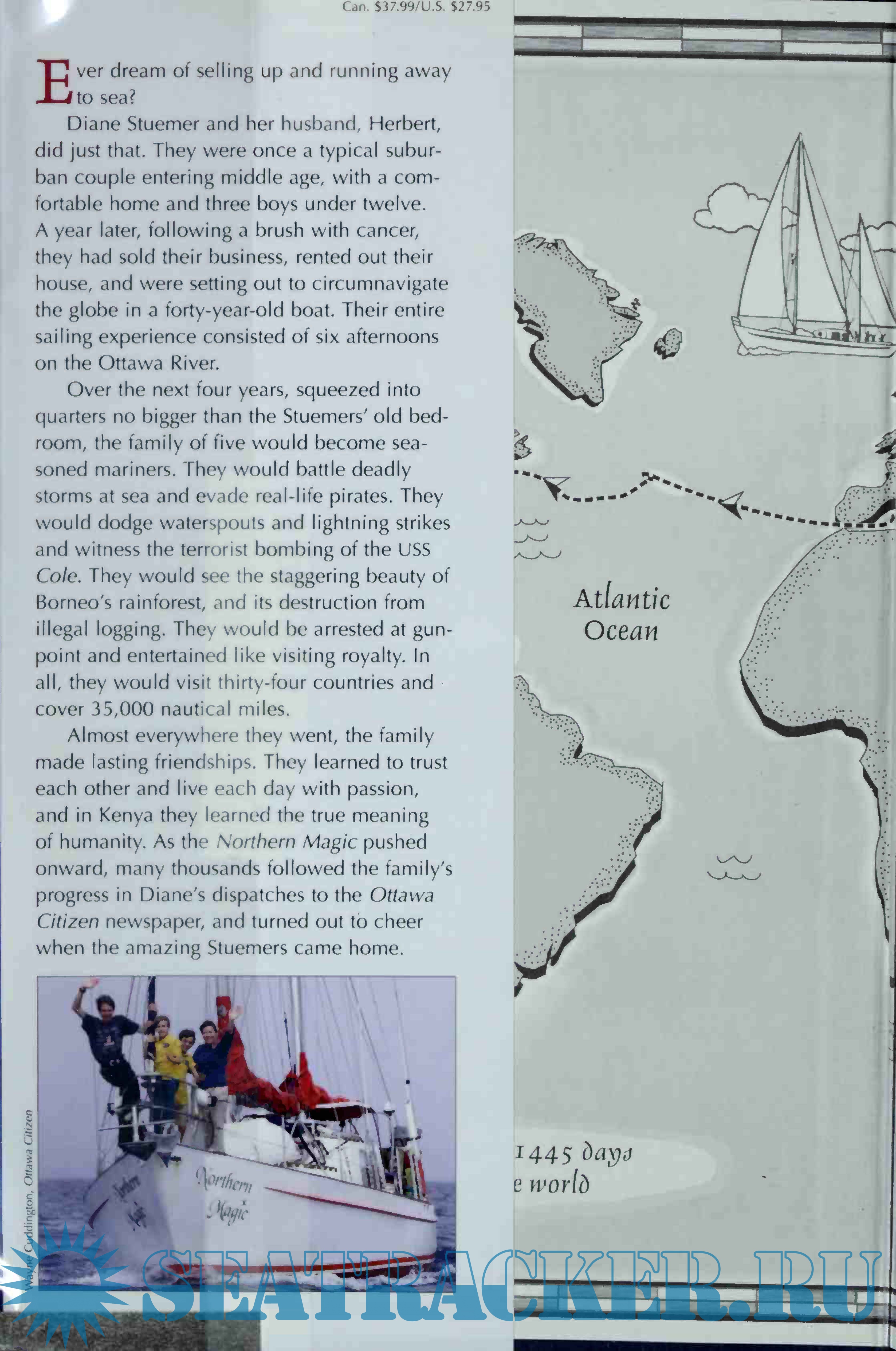 Description: Ever dream of selling up and running away to sea? Diane Stuemer and her husband, Herbert, were once a typical suburban couple entering middle age, with a comfortable home and three boys under twelve. A year later they had sold their business, rented out their house, and were setting out to circumnavigate the globe in a 40-year-old yacht. Their entire sailing experience consisted of six afternoons on the Ottawa River.