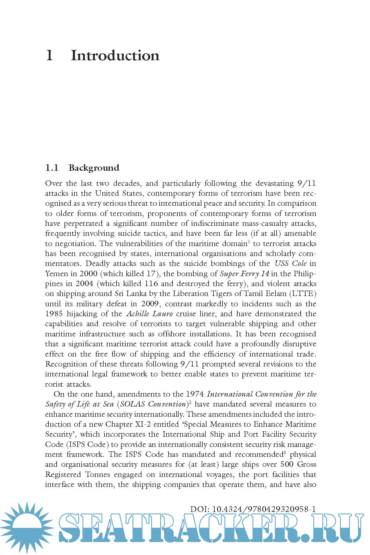 After discussing the overlaps and distinctions between piracy and maritime terrorism, this book considers how the International Ship and Port Facility Security Code, and other vessel identification and tracking measures in the 1974 International Convention for the Safety of Life at Sea, would be likely to reduce the risk of terrorist attacks at sea. It explains how the 1982 United Nations Convention on the Law of the Sea is less than clear on the powers of states to protect offshore installations, submarine cables and pipelines from interference by terrorists. In light of these uncertainties, it considers how the 2005 Protocol to the Convention for the Suppression of Unlawful Acts Against Maritime Navigation, the doctrine of necessity and states’ inherent self-defence rights might apply in the maritime security context.