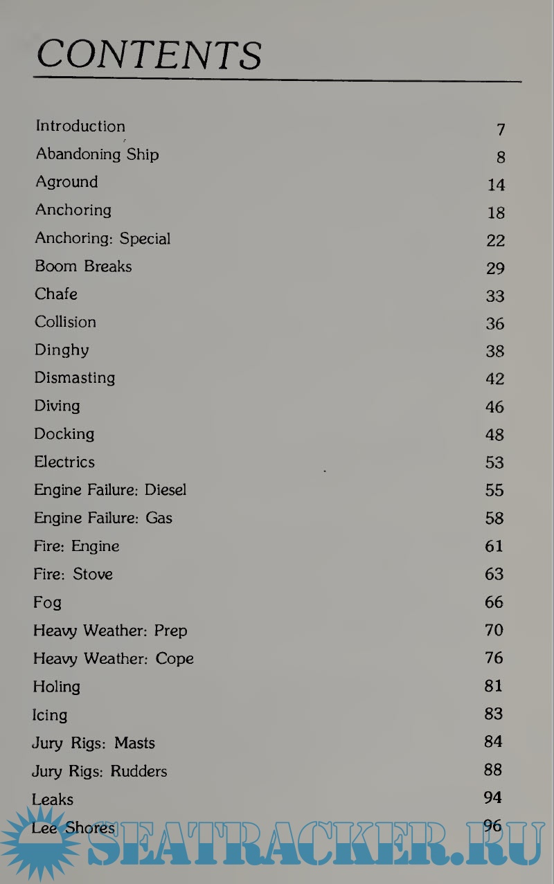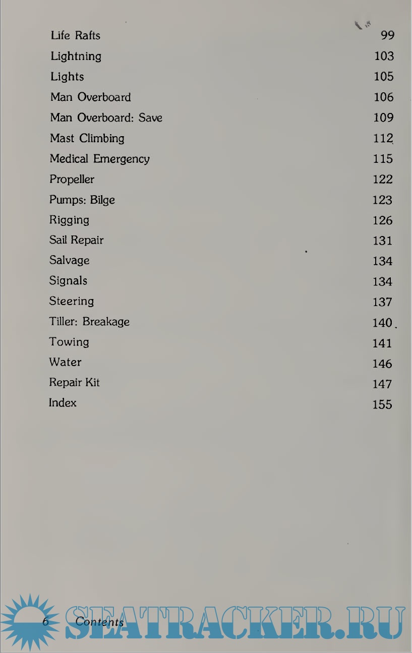 Year: 1989 Language: English Author: Tony Meisel Genre: Manual Publisher: Collier Books Edition: First ISBN: 0-02-044481-8 Format: PDF & EPUB Quality: Scanned pages Pages count: 168 Description: Features simple, step-by-step instructions to follow in case of boating mishaps and emergencies, from the common to the life-threatening