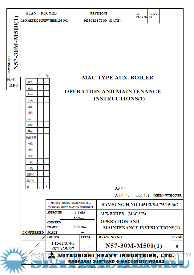 Description: Mitsubishi Auxiliary Boiler Type MAC-30B Operation & Maintenance Instructions