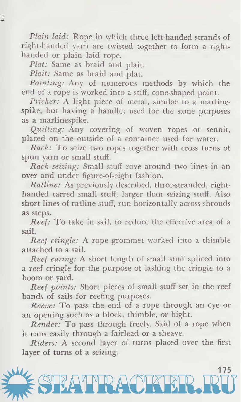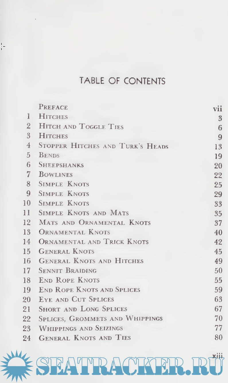 Year: 1945 Language: English Author: Raoul Graumont Genre: Handbook Publisher: Cornell Maritime Press Edition: First ISBN: 0-87033-030-6 Format: PDF Quality: Scanned pages Pages count: 210 Description: This handbook serves as a practical guide for all phases of knot techniques - both practical and decorative in purpose. Much more than a reference work, the handbook leads the interested reader to the mastery of an artistic and absorbing hobby. Common types of work knots such a hitches, sheepshanks, and bowlines are demonstrated along with good explanation of blocks and tackle. There are sections of sennet braiding, ornamental designs, lashings, securing hawsers, boatswain's chair, hammock making, and various ties which provide an excellent foundation for understanding and executing general knot work and wearing.