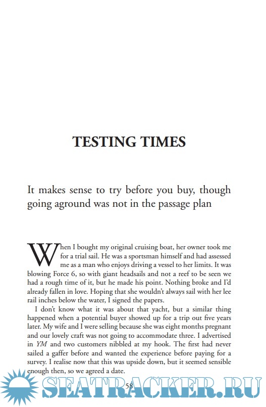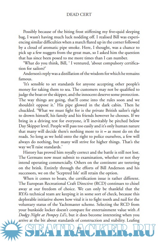 Year: 2011 Language: english Author: Tom Cunliffe Genre: - Edition: first published ISBN: ISBN 978-1-119-99283-7 Format: EPUB Quality: Scanned pages + text layer Pages count: 244 Description: The sea is the last great escape. And Tom is one of its staunchest defenders. You may not always agree with his outspoken views, bu the can spin a good yarn with the best. Cunliffe is as irascible as he is indispensable and this collection of his columns makes an ideal bunkside companion from one of the great cruising commentators. Paul Gelder Editor, Yachting Monthly Additional info: Additional info: https://seatracker.club/tracker.p...id=13371#results