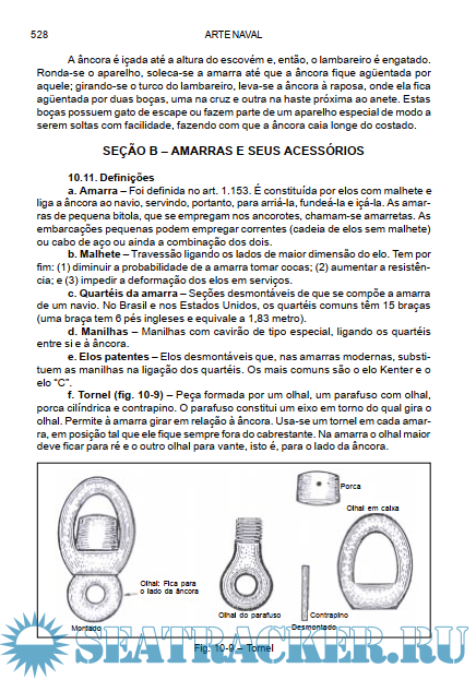 f.Tornel; 10.12.Manilhas; elos patentes: a.Manilha da âncora ou manilhão; b.Manilha
