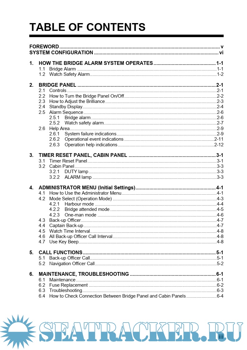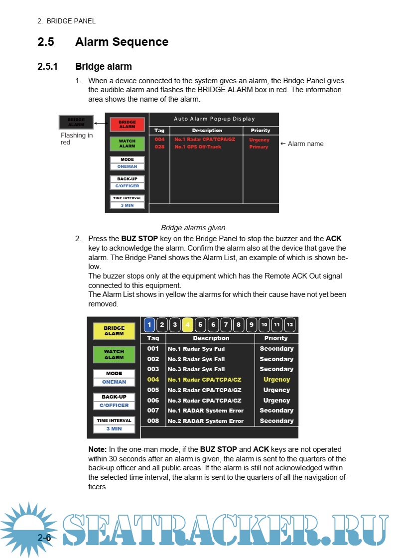 Year: 2009 Language: english Author: Furuno Electric Co., Ltd Genre: Manual Format: PDF Quality: eBook Pages count: 75 Description: The BR-1000 Bridge Alarm System collectively controls the warning notice from equipment on the bridge and monitors watch officer’s presence to prevent marine accidents. • Complies with IMO Resolution MSC.125(75) for Bridge Navigational Watch Alarm System • Collectively manages and presents alarm information on the Bridge Panel • Alarm information is sorted and displayed according to set priority • Watch safety alarm watches for unattended bridge or operator disability • Transmits alarm to backup officer if the Officer of the Watch fails to respond to active alarm or emergency call. Release consist of Operator's manual and specification description of Furuno BNWAS.
