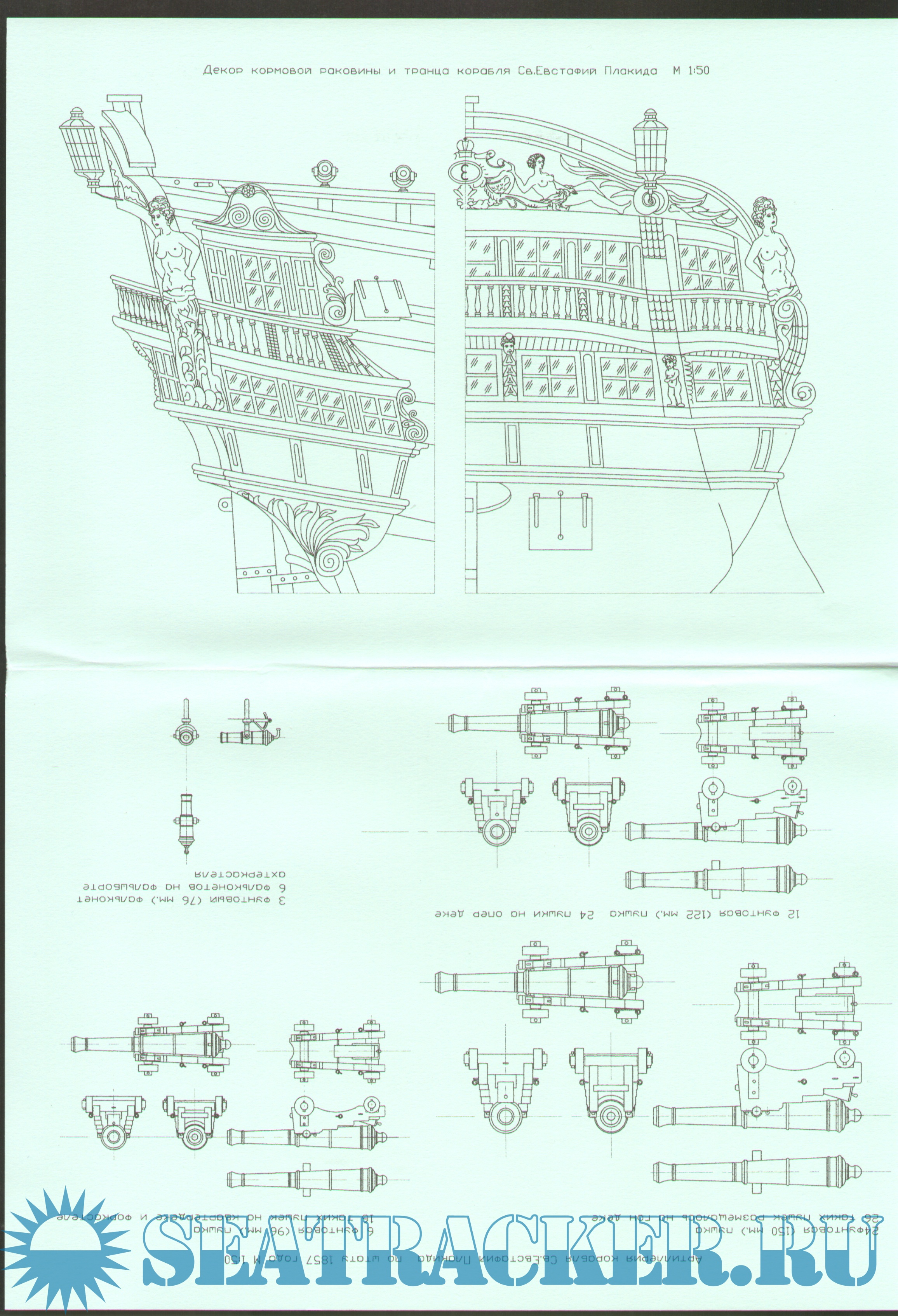 18 листов чертежей 66 пушечного корабля ''Святой Евстафий Плакида'' в масштабе 1:100