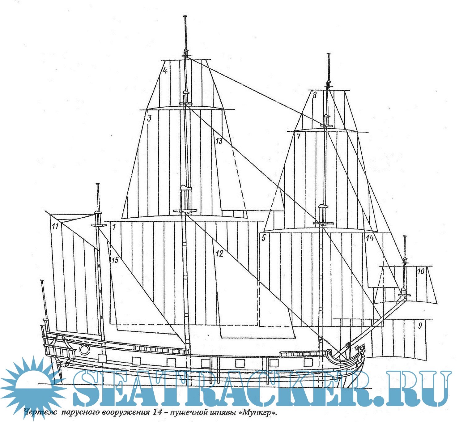 6 листов чертежей 14-ти пушечной шнявы "Мункер"