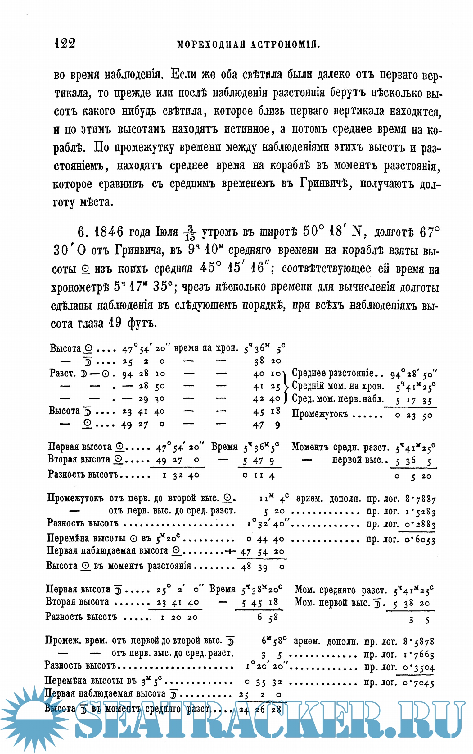 Приступая к составлению этой книги, я принял в руководство все лучшие сочинения по части и морской астрономии, и избрал легчайшие и кратчайшие способы к вычислениям, проверив каждый из них и принимая только те, которые при краткости своей, дают результаты ближе всех других подходящие к точнейшим вычислениям."
