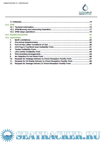 Description: This document has been written for reference and use by all the port users namely masters of seagoing vessels calling Ras Laffan Port, Agents, Shipping lines, Consignees, Shippers, publishers of nautical information and or any other party that transacts business through the Port.