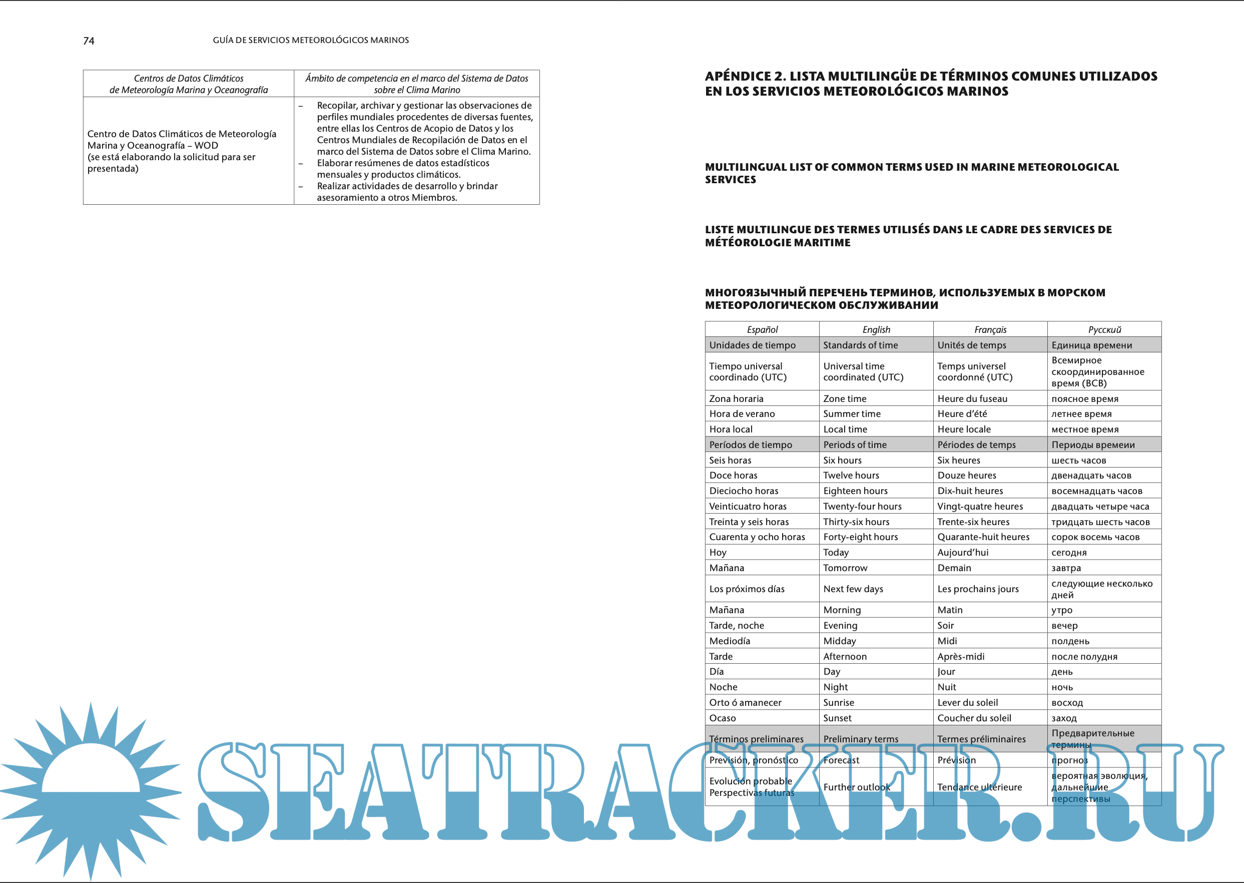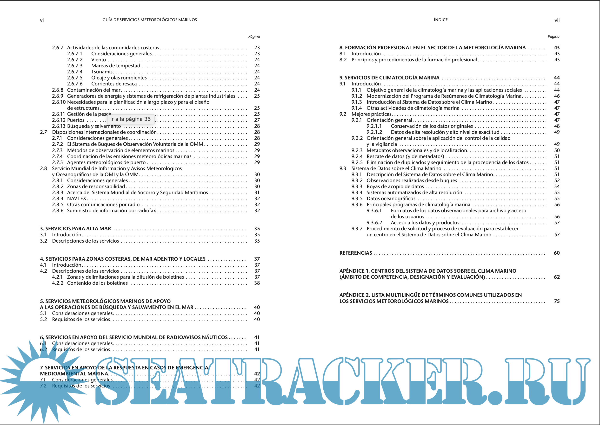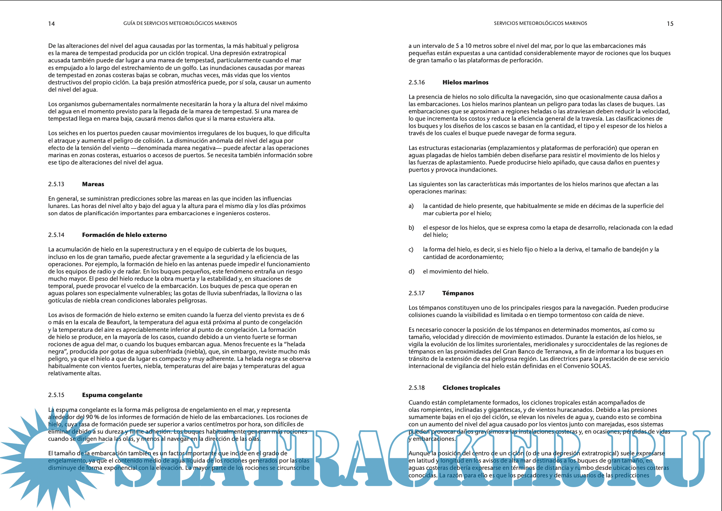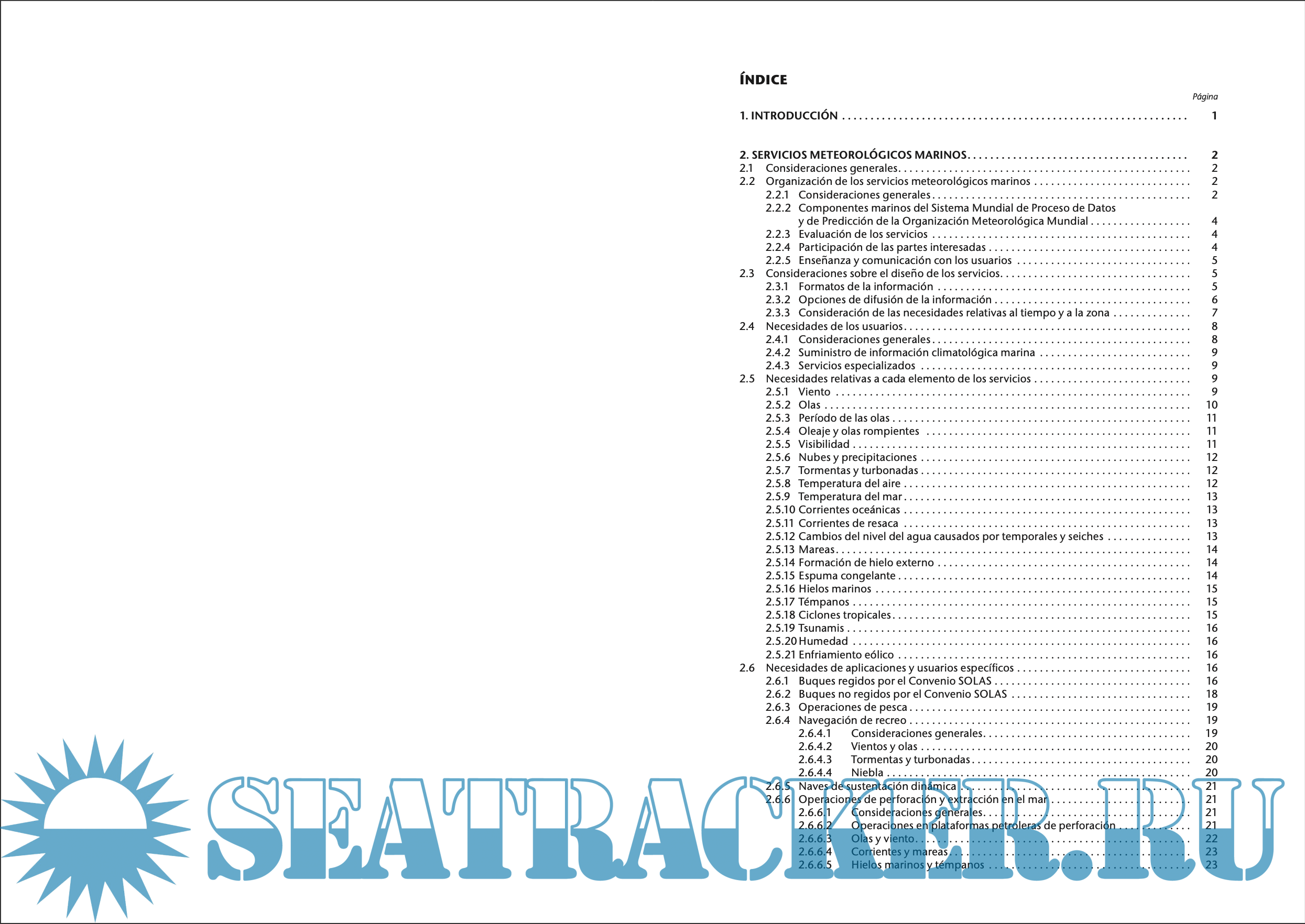 Year: 2018 Language: spanish Author: World Meteorological Organization Genre: Guide Publisher: World Meteorological Organization Edition: 2018 ISBN: 978-92-63-30471-1 Format: PDF Quality: eBook Pages count: 91 Description: La presente Guía responde a los siguientes propósitos: a) describir las necesidades requeridas para los distintos tipos de servicios; b) explicar las razones a que responden los métodos convenidos para la prestación de servicios; c) orientar sobre la manera de constituir y mantener servicios meteorológicos marinos. The purpose of this Guide is : (a) Describing the requirements for the various types of service; (b) Explaining the rationale for the agreed methods of providing services; (c) Giving guidance on how to set up and maintain marine meteorological services.