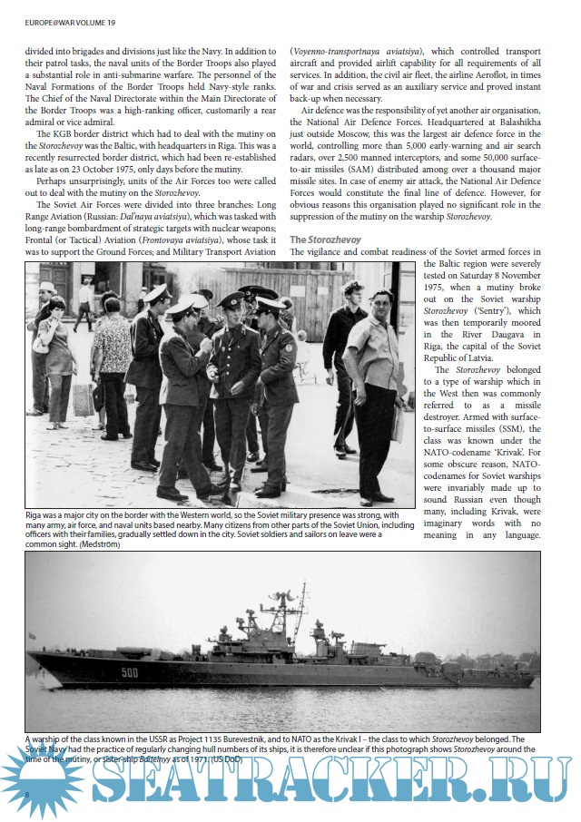 Year: 2022 Language: english Author: Michael Fredholm von Essen Genre: History Edition: Europe War №19 Format: PDF Quality: Scanned pages Pages count: 60 Description: In 1975, Lieutenant Commander Valeriy Sablin led his crew in a mutiny on the Soviet warship Storozhevoy. The ship was then located in Riga, Soviet Latvia. Sablin’s avowed intention was to foment a new communist revolution by taking the warship to Leningrad, where he expected to receive the support of the navy and the masses. However, the Soviet leadership thought that Sablin intended to defect to Sweden, bringing with him a warship of modern design with all its armaments, electronics, communication devices, and code books. As a result, Soviet supreme leader Leonid Brezhnev ordered the destruction of the warship. After several dramatic, but ultimately failed, attacks on the Storozhevoy, Colonel General Sergey Gulyayev, commander of the Naval Aviation of the Baltic Fleet, personally ordered a missile launch against the Storozhevoy, employing the special protocol for the launch of nuclear missiles. The purpose of the launch was to destroy the warship. However, by then the crew had already detained Sablin and announced their intention to surrender. The air crews did not know this; however, their commanding officer, Colonel Arkhip Savinkov, never launched the missile, instead faking a radar malfunction. The mutiny was over. Due to the very serious implications of the suppressed mutiny, and the difficulties in finding and attacking the Storozhevoy, which showed that the combat readiness of the Soviet armed forces was less than desired, the participating air crews were ordered to destroy any documentation of the incident and keep quiet about what had happened. As a result, not even the KGB could later piece together all events of the incident, nor is there information in Soviet archives on all the actions taken. For much of the mutiny, the Soviet Navy did not even know the correct location of the Storozhevoy. However, the Swedish SIGINT service monitored the entire incident in real time. The Swedish SIGINT reporting enables a detailed, blow-by-blow description of the events. Being real-time intercepts, the reporting is a far more trustworthy source than the later, often embellished accounts previously published. For this reason, the book offers a detailed and authoritative account of the mutiny based on the SIGINT reporting, with supporting evidence from other surviving sources, together with an account of how Western intelligence interpreted and handled the reporting.