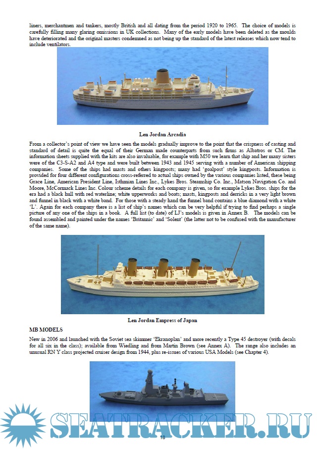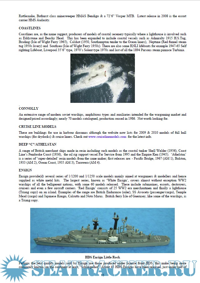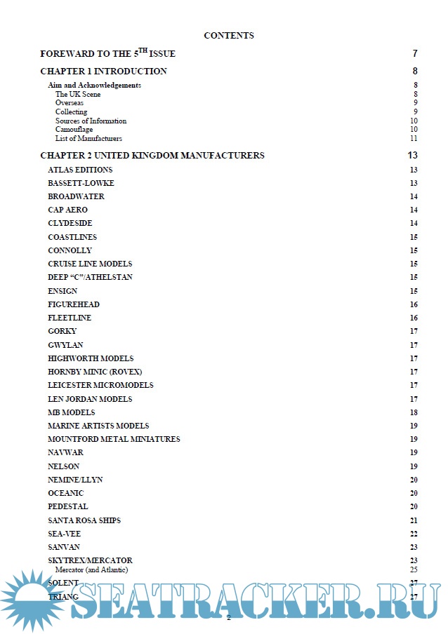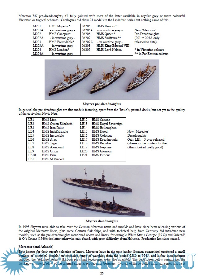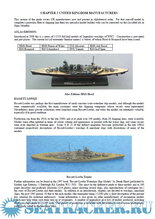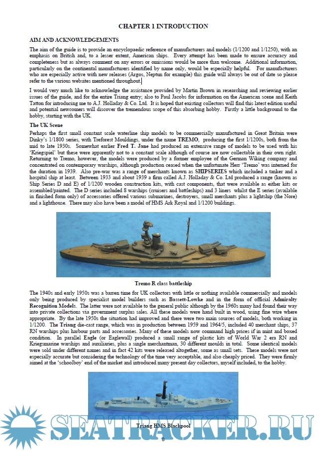 Year: 2009 Language: english Author: Kelvin Holmes Genre: Guide Format: PDF Quality: eBook Pages count: 90 Description: The aim of the guide is to provide an encyclopaedic reference of manufacturers and models (1/1200 and 1/1250), with an emphasis on British and, to a lesser extent, American ships. Every attempt has been made to ensure accuracy and completeness but as always comment on any errors or omissions would be more than welcome. Additional information, particularly on the continental manufacturers identified by name only, would be especially helpful. For manufacturers who are especially active with new releases (Argos, Neptun for example) this guide will always be out of date so please refer to the various websites mentioned throughout.