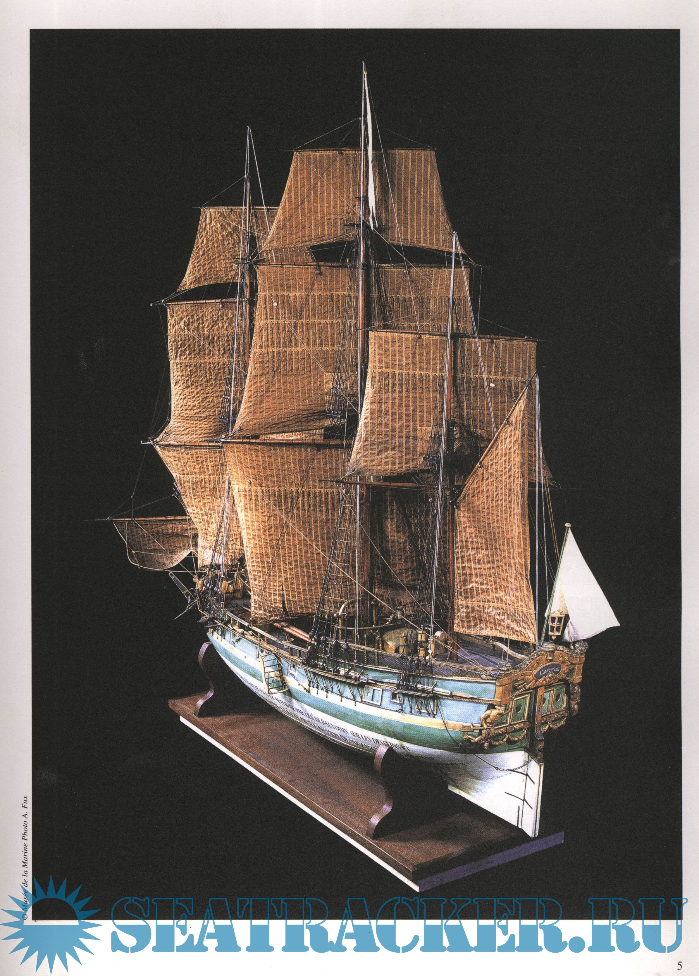Ce cadre historique est complété par des documents (manuscrits de la bibliothèque Sainte Geneviève) le rôle d'armement de 1767 et surtout l'inventaire détaillé de la corvette lorsqu'elle fut cédée au Roi en 1769.