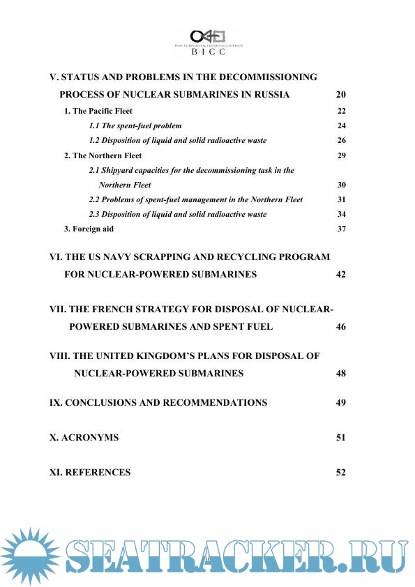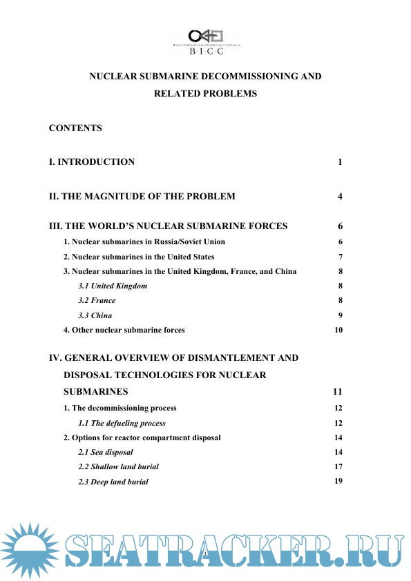 Description: This Paper provides an overview of the status and problems related to nuclear submarine decommissioning worldwide. After a brief description of the history and development of the world nuclear submarine forces, it discusses the main dismantlement and disposal technologies currently used. Here, it mainly concentrates on defueling procedures and the accompanying risks and on various different options for dealing with reactor compartments. Greatest emphasis is given to the nuclear fleet in Russia and the United States.