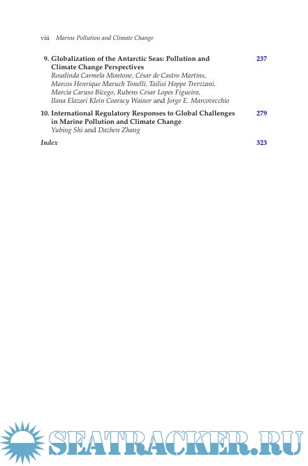 Year: 2017 Language: english Author: Arias A.H., Marcovecchio J.E. Genre: Technical book Publisher: CRC Press ISBN: 1482299437 Format: PDF Quality: Scanned pages Pages count: 337 Description: This book presents a broad overview of pollution issues facing climatic, economic, and legal globalization. Topics include changes in oceans from ancient times to the present, the importance of marine currents and changing climates, marine pollution linked to climate change (fossil fuels, global carbon dioxide, heavy metals, pesticides, plastics, emerging pollutants, and marine debris), global shipping and species invasion, global climate change in the Arctic and Antarctic environments, and regulatory responses to mitigate pollution and climate change in oceans.