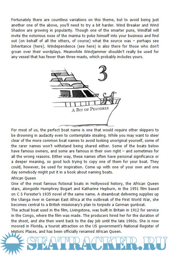 The perfect gift for any skipper or would-be skipper, and featuring hundreds of common and uncommon names, this entertaining little book answers perhaps the most important question new owners should ask themselves: What will this name say about me? And as everyone knows, once you've named a boat, you never ever change it, so it also answers the question: What is my boat name saying about me right now?