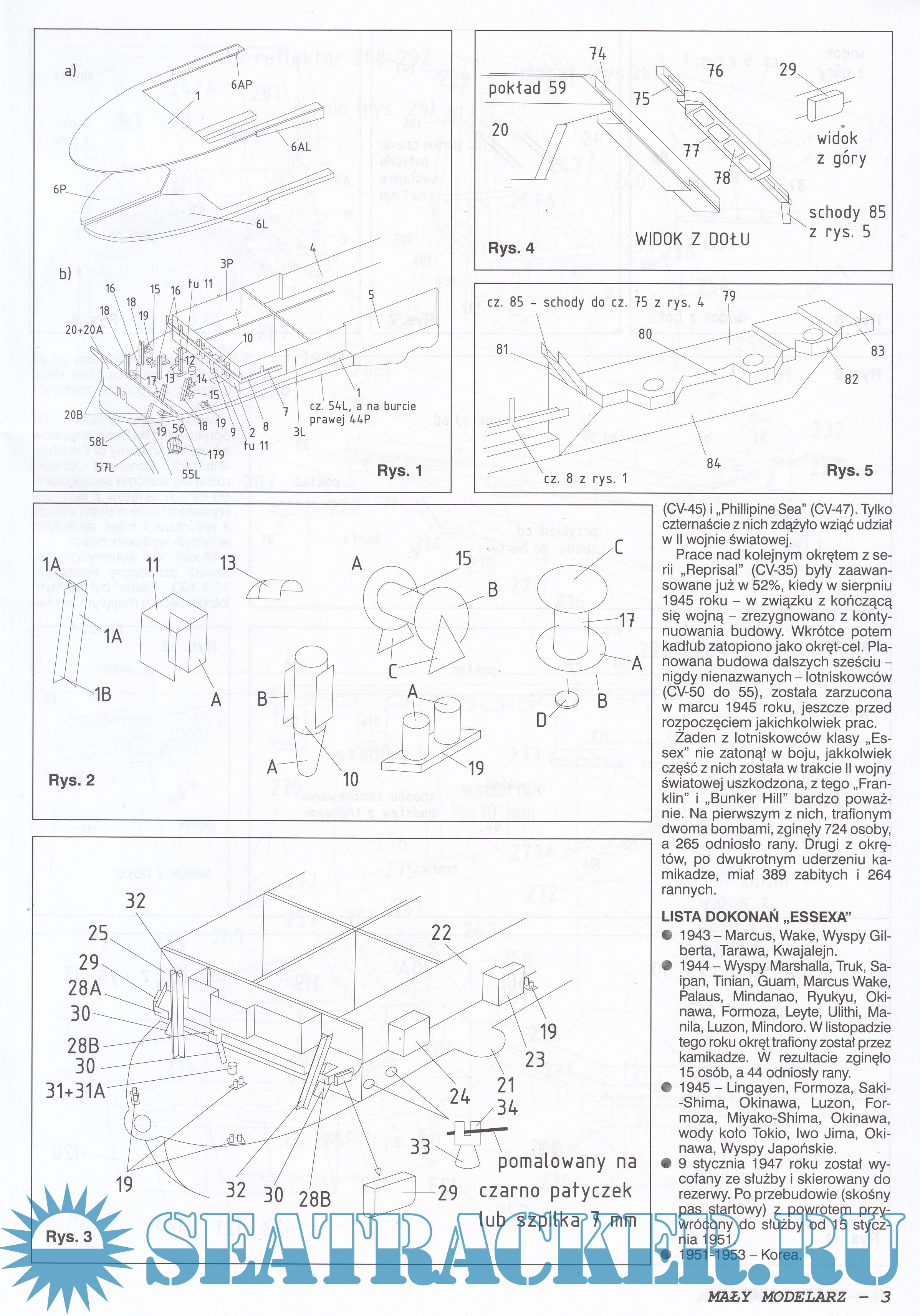 Год выпуска: 2014 Язык: польский Автор: Andrzej Krasnicki Жанр: Другое Издательство: Maly Modelarz Издание: 2014 10-11-12 Формат: JPEG Качество: Изначально компьютерное (eBook) Количество страниц: 27 Описание: 27 листов цветных выкроек и инструкций для изготовления бумажной модели авианосца США ESSEX в масштабе 1:200