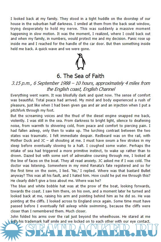 Eltham, South London. 1984: the hot fug of the swimming pool and the slow splashing of a boy learning to swim but not yet wanting to take his foot off the bottom. Fast-forward four years. Photographers and family wait on the shingle beach as a boy in a bright orange hat and grease-smeared goggles swims the last few metres from France to England. He has been in the water for twelve agonizing hours, encouraged at each stroke by his coach, John Bullet, who has become a second father.
