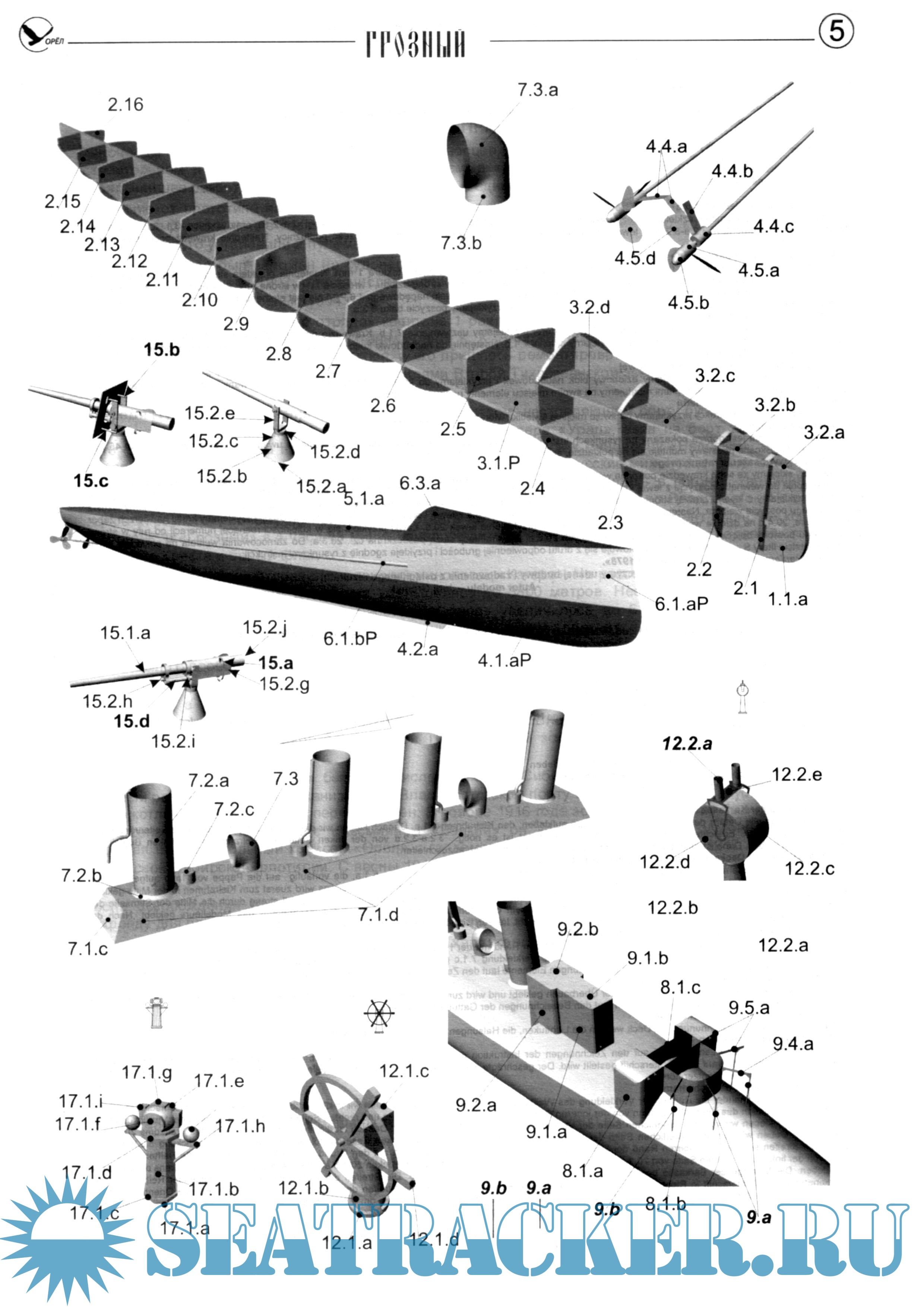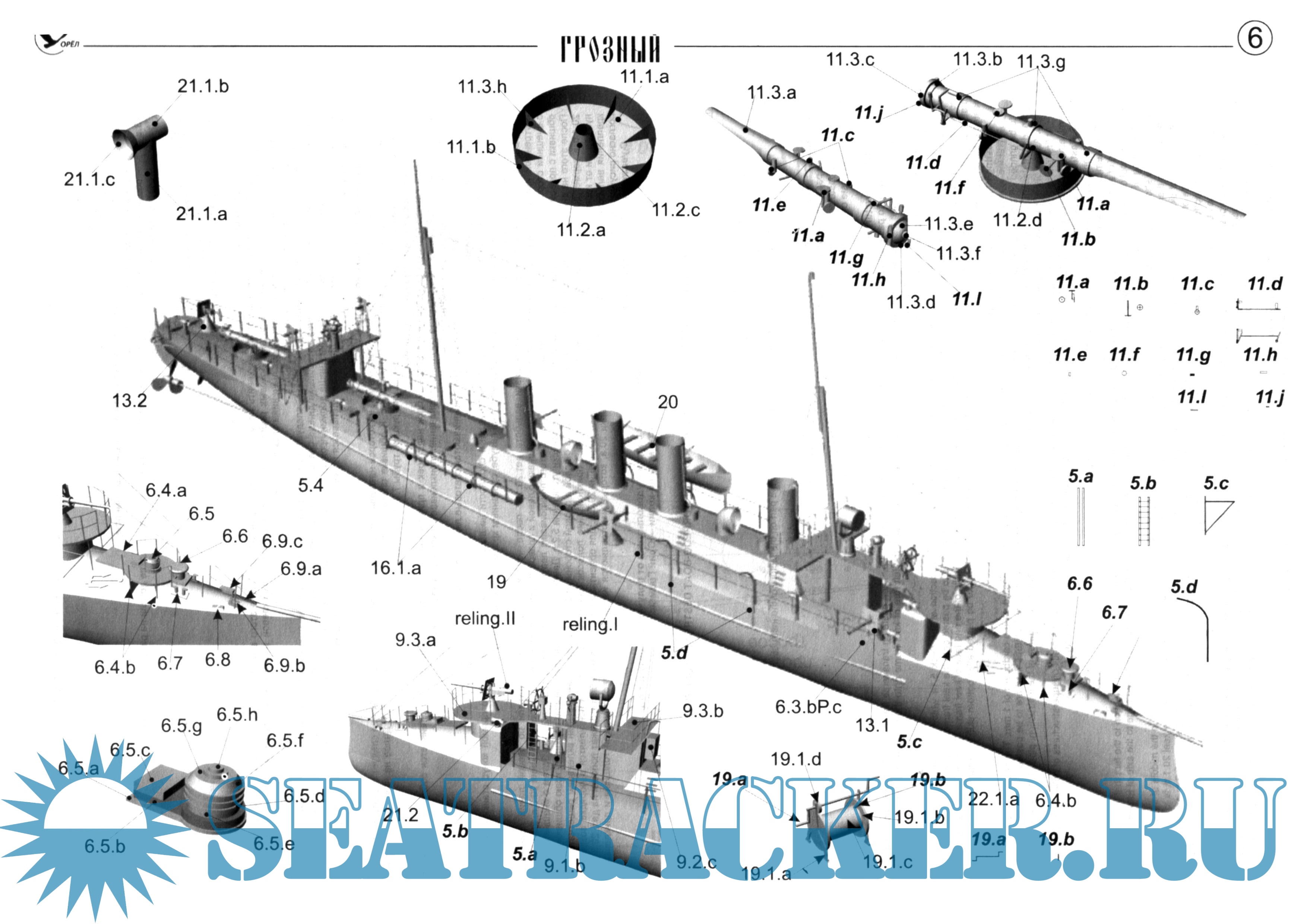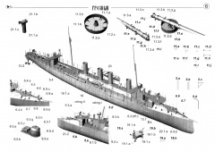 11 листов цветных выкроек и инструкций для изготовления бумажной модели эсминца Грозный 1904 год в масштабе 1:200Скриншоты