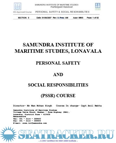 Description: This course, called the Personal Safety and Social Responsibility, aims to provide familiarization, basic safety training and instruction for safe working procedures and social responsibility aboard ship. It is based on the guidance on training in section A-VI/ 1 of the STCW 1978 as amended in 1995 (STCW 1995) Section A-VI/1-4. Appendix M-VI/1D of Meta Manual Vol.II and IMO Model course 1.21 have been used in preparation of material for this course.