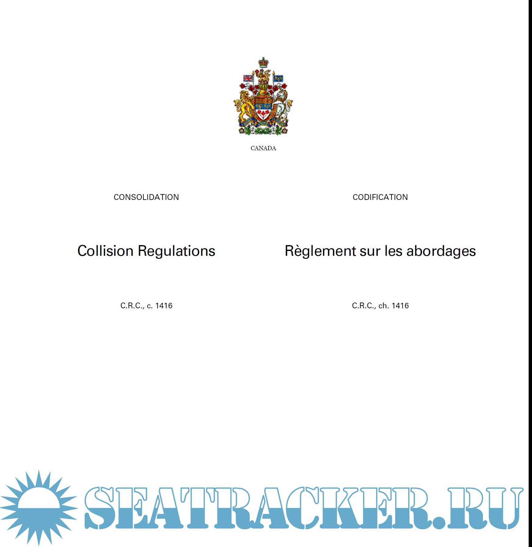 Description: Collision Regulations (C.R.C., c. 1416) updated up to 2023