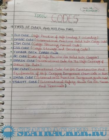 Year: 2022 Language: english Author: Kunal Tomer Format: JPEG Quality: Photo of pages Pages count: 82 Description: Second Mate F.G. | Orals | Mercantile Marine Department (MMD), India Examinations Function: 2 Handwritten Notes on International Codes by Kunal Tomer.