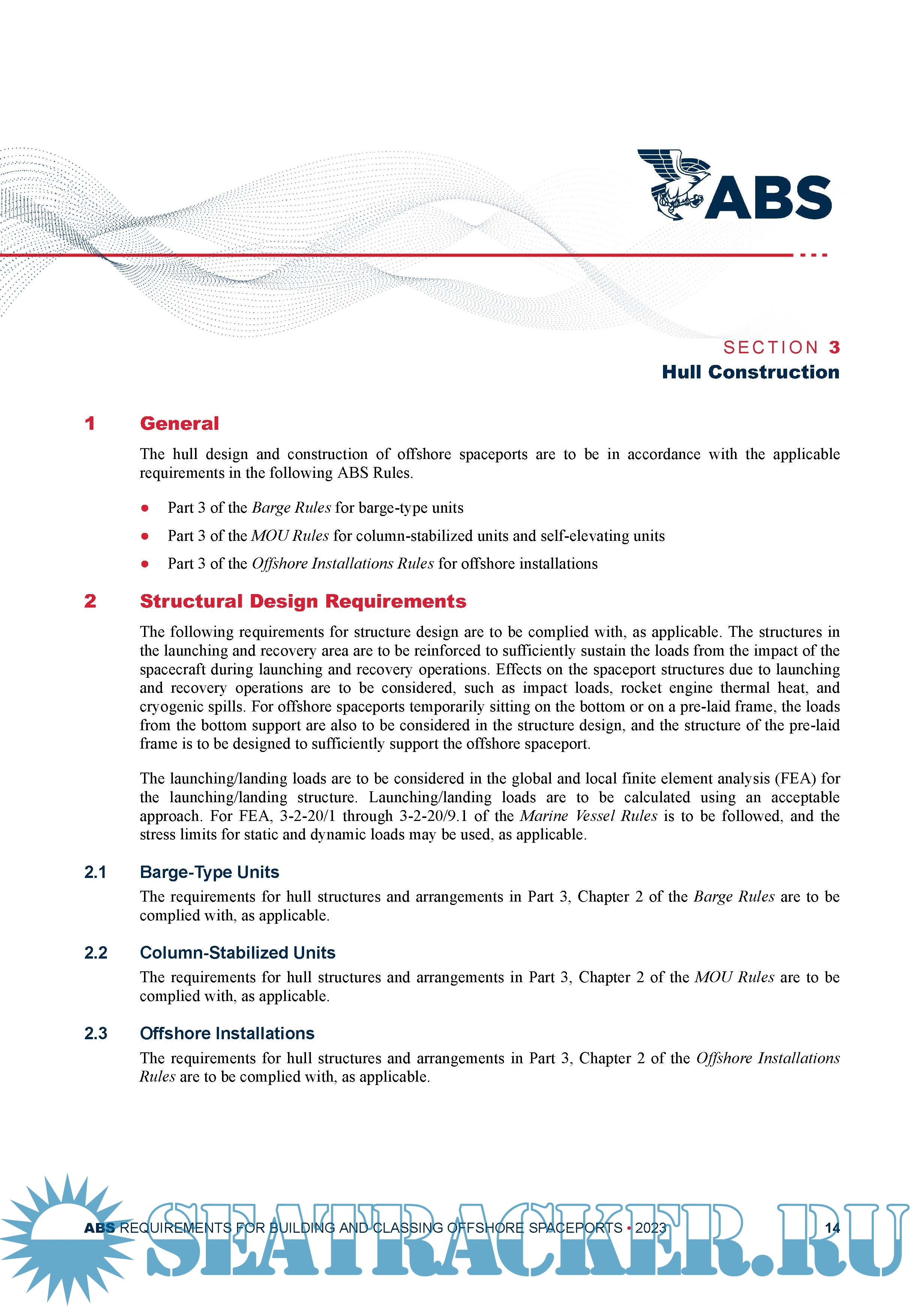 This document is applicable to offshore spaceports of the following types: barge-type units, columnstabilized