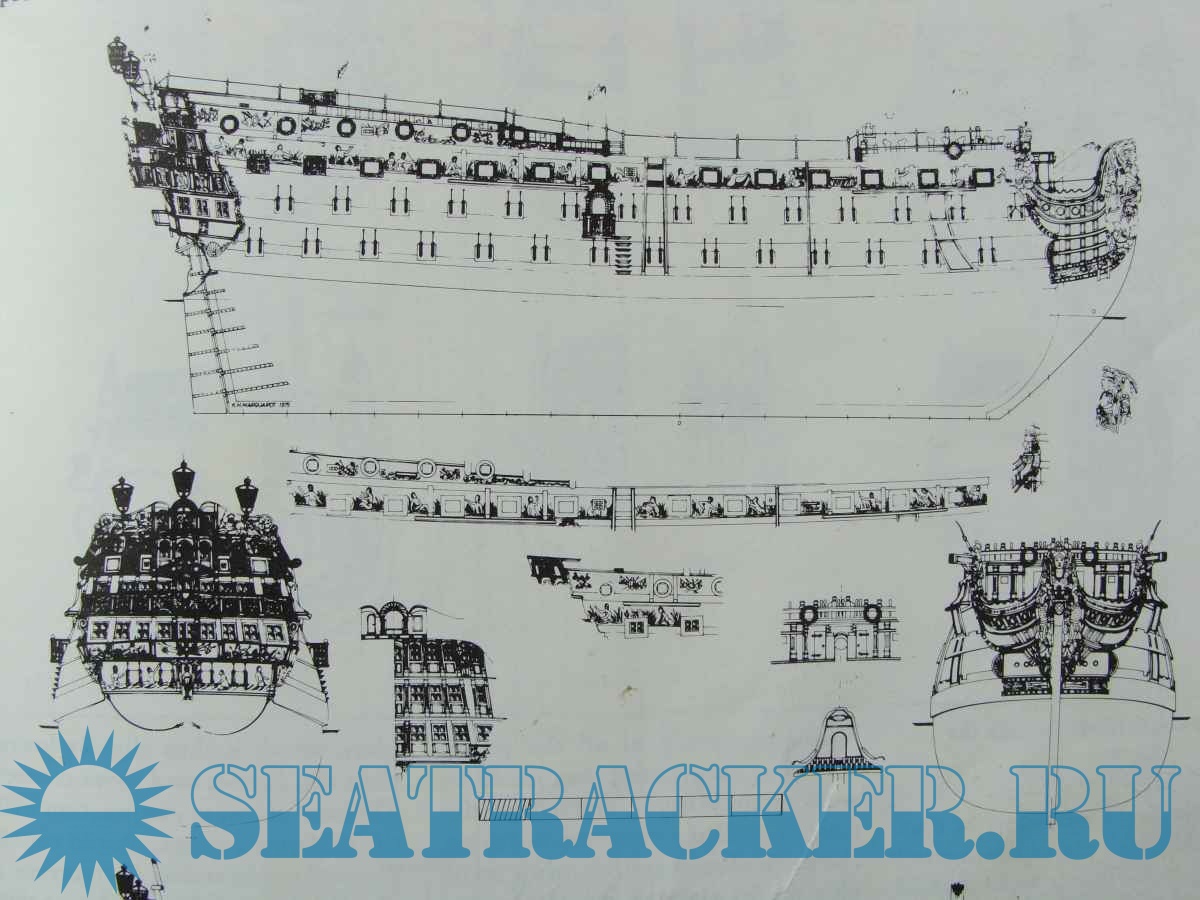 Чертежи 100-пушечного линейного корабля "Пётр Первый и Второй" 1723-1727 года