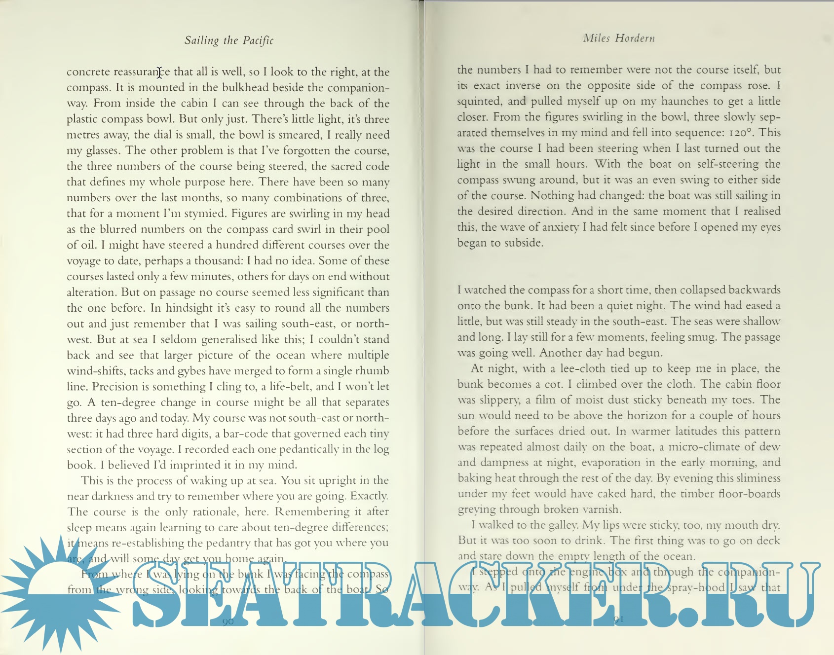Year: 2002 Language: English Author: Miles Hordern Genre: Textbook Publisher: St. Martin's Press Edition: First ISBN: 0-312-31081-1 Format: PDF & EPUB Quality: Scanned pages Pages count: 270 Description: Solo sailors are widely known to be a breed apart, and here's an unforgettable book that shows just how wide a berth they give themselves from the crowds. Several years ago, Miles Hordern, a schoolteacher by training---though he had run away to sea a few times before---set sail on a twenty-eight-foot boat from New Zealand to South America, the largest uninterrupted stretch of water on earth, and into the dominion of icebergs, cyclones, and swells of monumental proportions. The trip would take him through the fjords of Patagonia, one of the last uncharted areas in the world, then north on the Peru Current before he began his homeward voyage. Sailing the Pacific recounts that trip in prose so vivid you can almost feel the spray sting your face and the deck heave beneath your feet. Here is prose so hawser-taut that it takes you back to Conrad, Melville, and Poe, indeed all those writers whose works about the bounding main have launched countless imaginations. Hordern pauses to consider those who have gone before him, recounting the stories that have given life to this lonely and magisterial part of the world. Writers, adventurers, fictional characters, cartographers, doomed voyages from history's pages—from the Whaleship S.S. Essex to the HMS Bounty: the South Pacific drew them all, and in their way they left mark on its vast surface. Part sailing yarn, part adventure story, part homage to an unending but beckoning horizon, Sailing the Pacific will appeal to the sailor in each one of us, whatever the way we choose to answer the ocean's call.