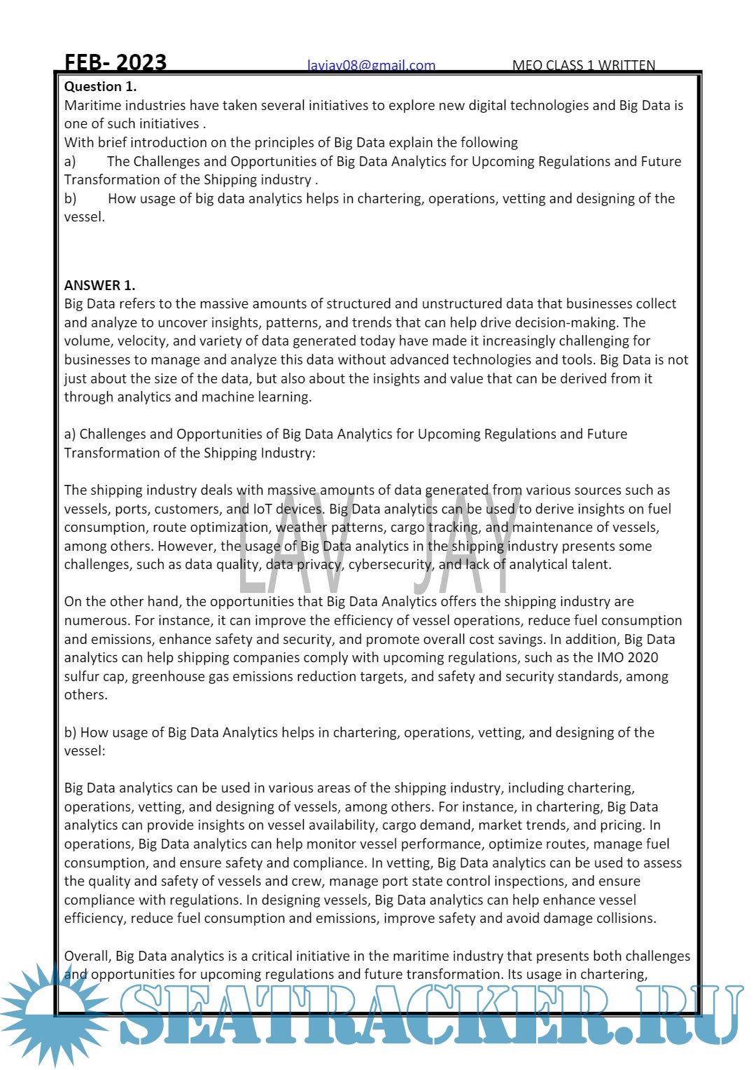 MEO Class I: Written Question and Answer (March) - Lav Jay [2023, PDF]