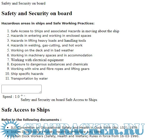 Year: 2020 Language: english Author: ADU Academy Genre: Training courses Publisher: ADU Academy India Private Limited Format: HTML Quality: eBook Pages count: Multiple Description: DGS (Directorate General of Shipping, India) E-Learning Content. Compilation of Online Course / Study Material for Chief Mate F.G. (Phase I) - Ship Safety, Emergencies, Maintenance and Managerial Skills from https://dgsmtt.aduacademy.in/ (Login only available for Indian Seafarers having INDOS No.) Login Not Required for users downloading file. Course Content is already compiled as html without any restrictions. View in Chrome/Firefox or any other browser.
