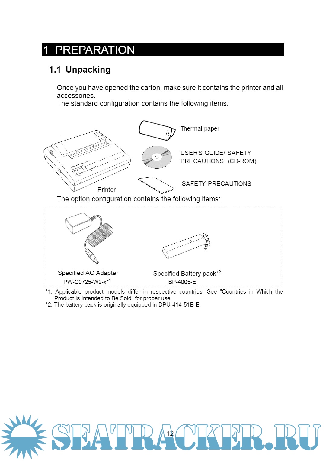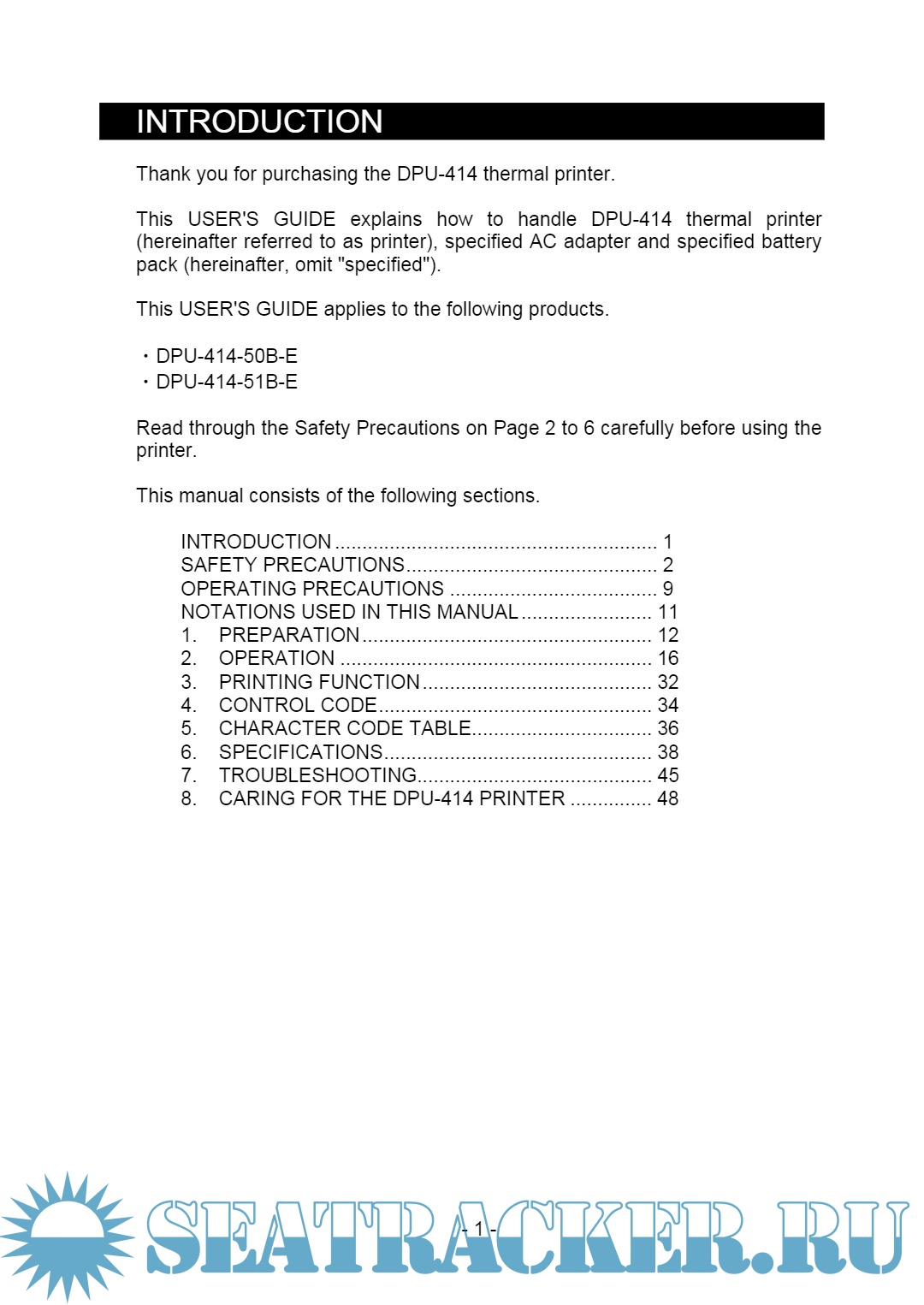 Description: This USER'S GUIDE explains how to handle DPU-414 thermal printer, specified AC adapter and specified battery pack.