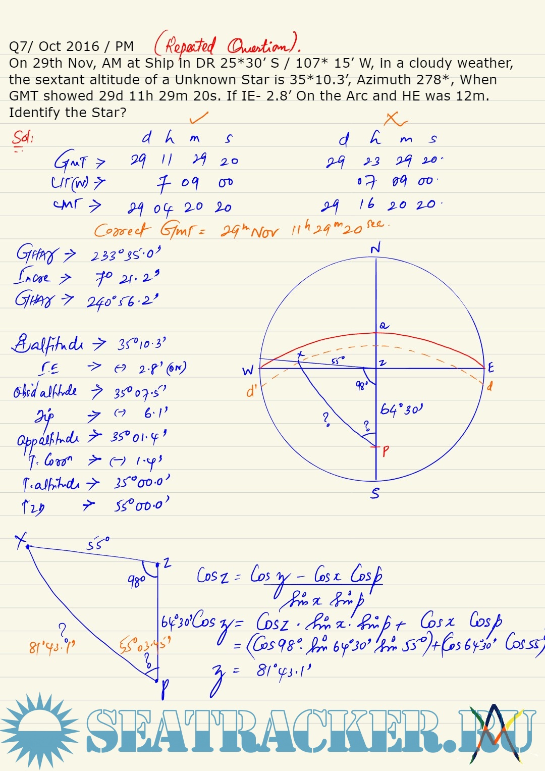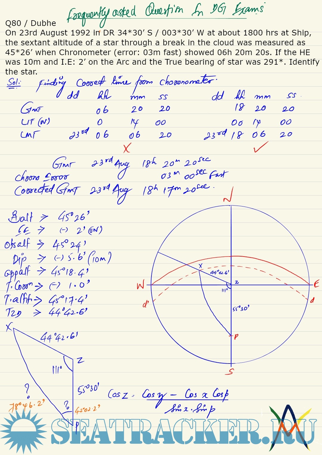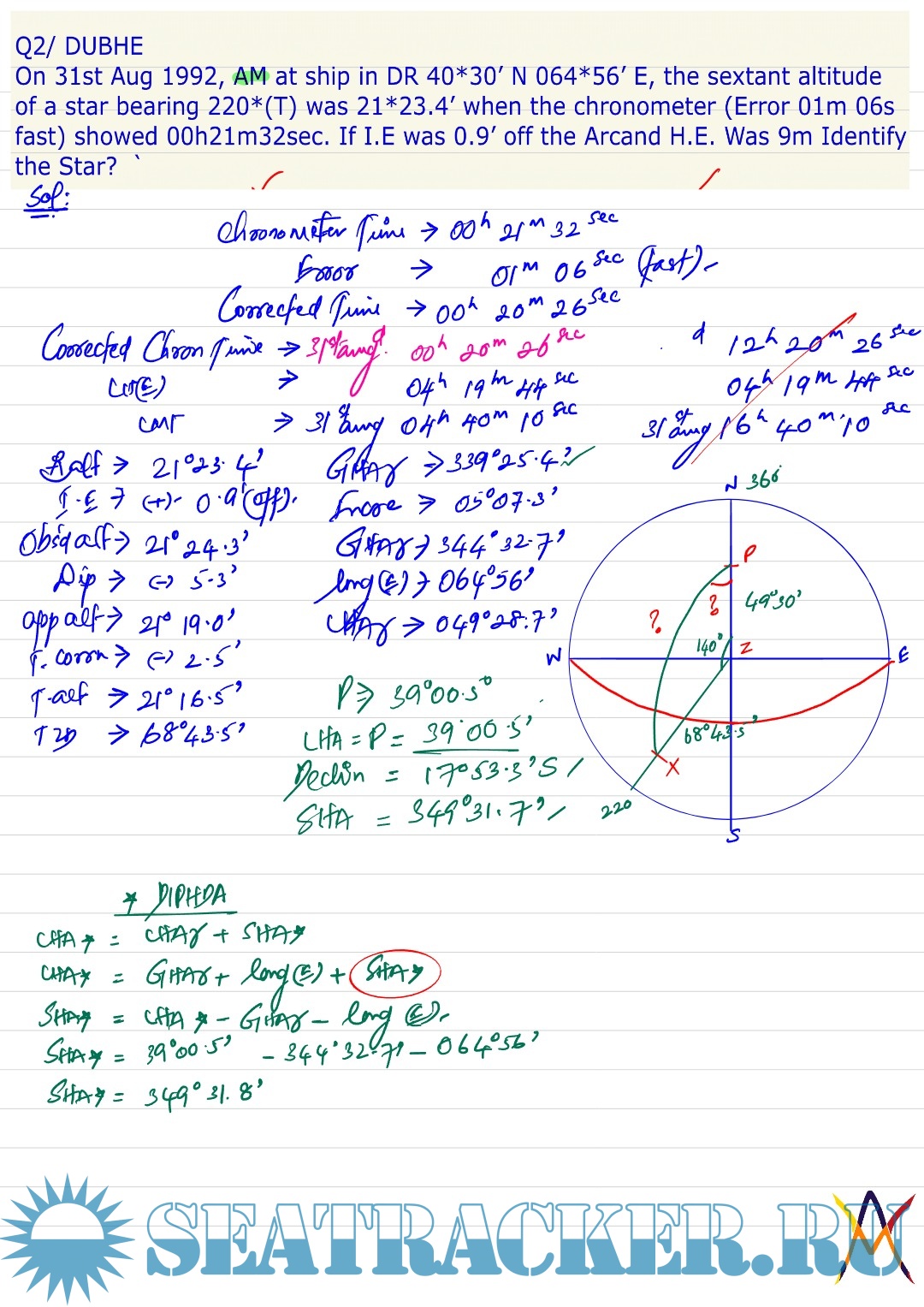 Navigation: Section C: Star Identification & Suitable Star Selection (Q.7) from Past Question Papers of Mercantile Marine Department (MMD), India Examinations for Phase I (Chief Mate F.G.)