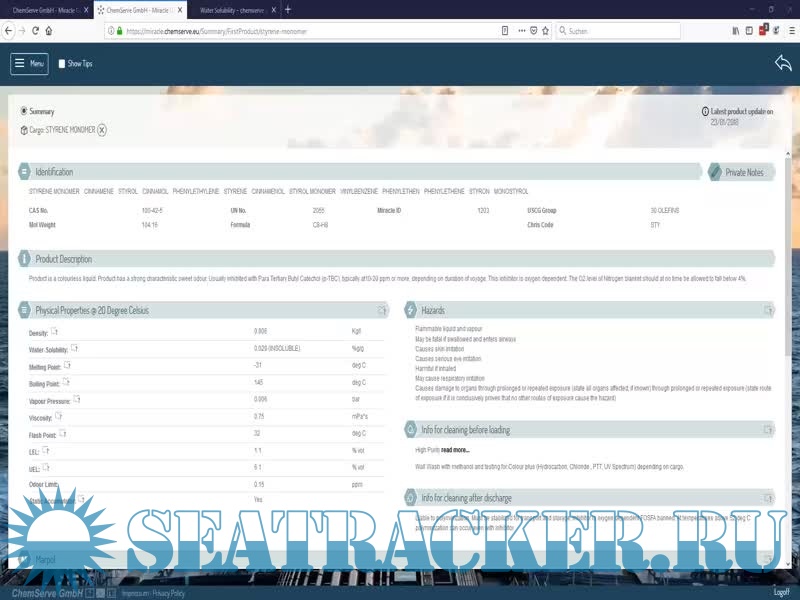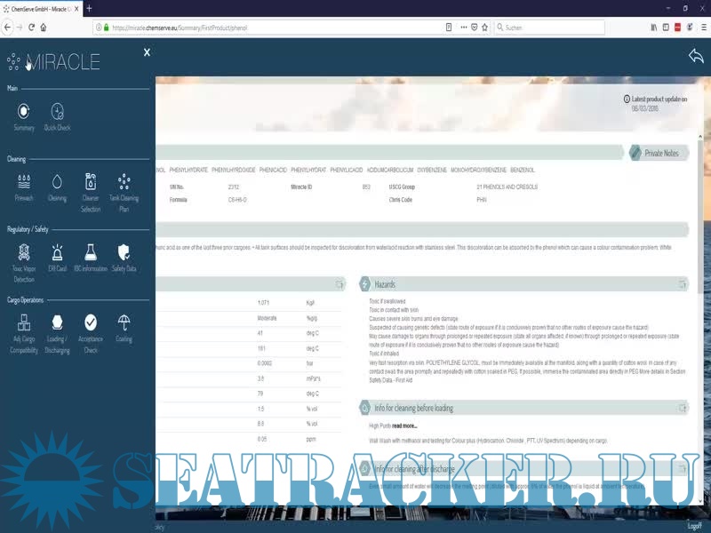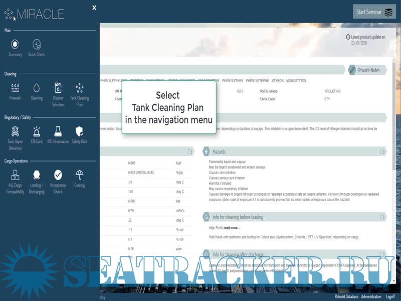 Description: MIRACLE is a regularly updated guide for Tank Cleaning and a Cargo Handbook.