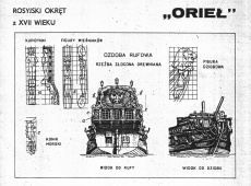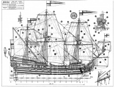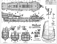 Описание: 5 листов чертежей парусного корабля ОРЁЛ Россия 1669 год в масштабе 1:76