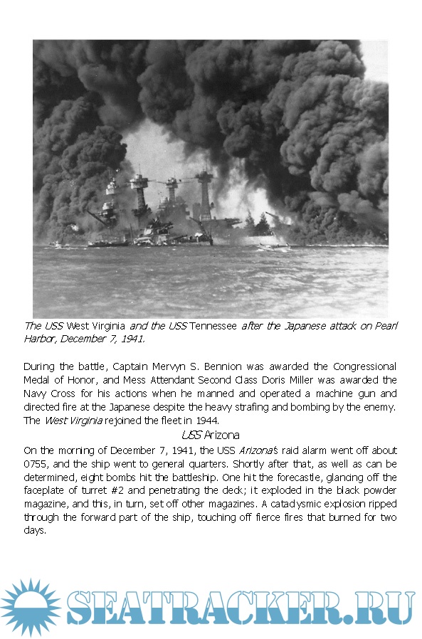 Description: On December 7, 1941, Japan waged a surprise attack on the United States Naval Base at Pearl Harbor. It was a major victory for the Japanese Navy, which in less than two hours destroyed 188 American planes, damaged another 159, and sunk or seriously damaged 18 U.S. warships. The battleships Arizona and Oklahoma were sunk. The battleships California, West Virginia and Tennessee were badly damaged and would not rejoin the United States fleet for months. Over 2,400 American military personnel were killed and 1,178 were wounded. The Japanese lost 29 planes and pilots, five midget submarines and one large sub with their crews. Here are 24 personal accounts of servicemen who survived the attack on Pearl Harbor. These accounts cover in detail the location of each man and his experience during and after the actual attack. Also included is general information about Pearl Harbor.