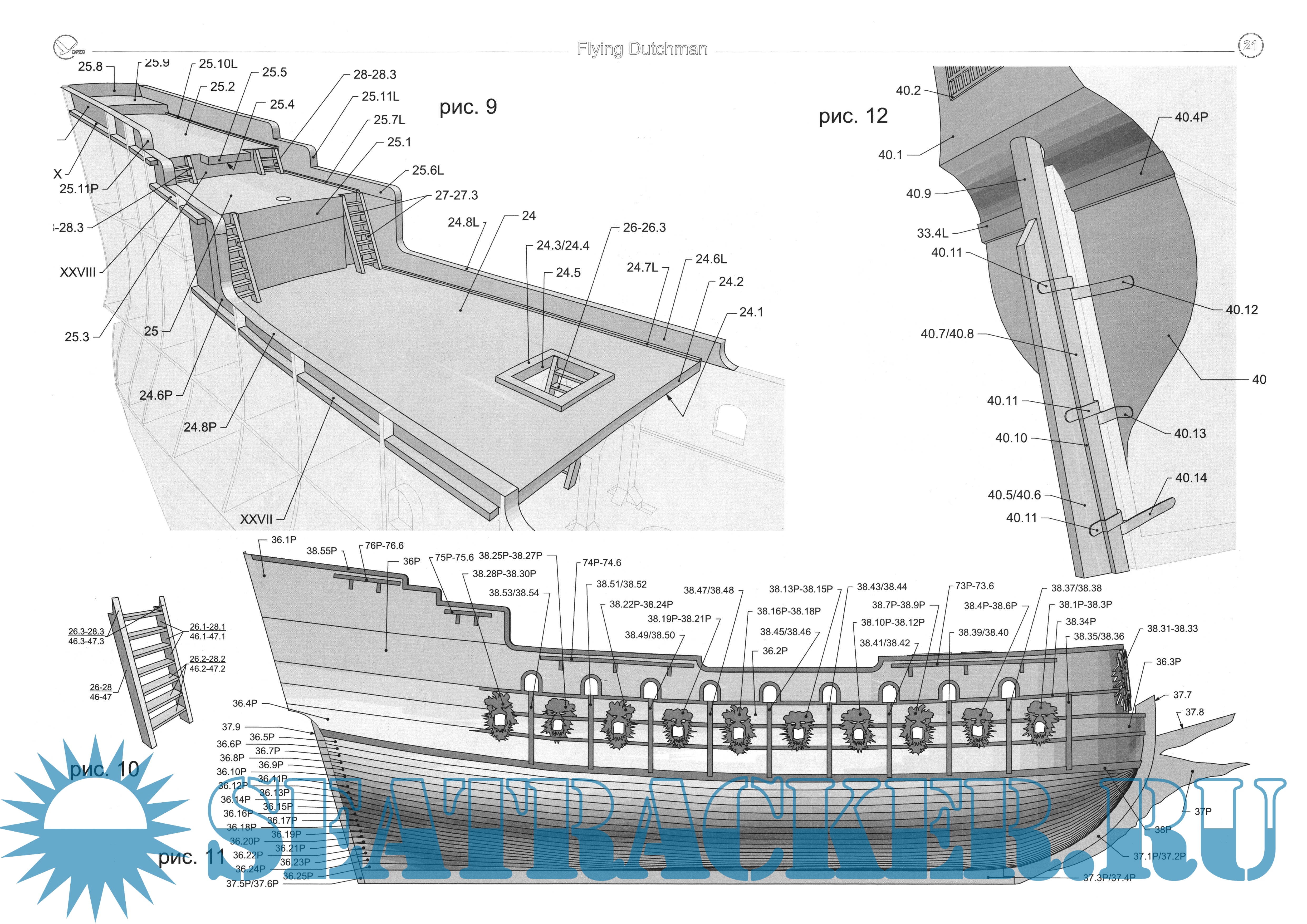 27 листов цветных выкроек и описаний для создания бумажной модели галеона "Flying Dutchma" из фильма "Пираты Карибского моря. На краю света", 2007 год в масштабе 1:100Скриншоты