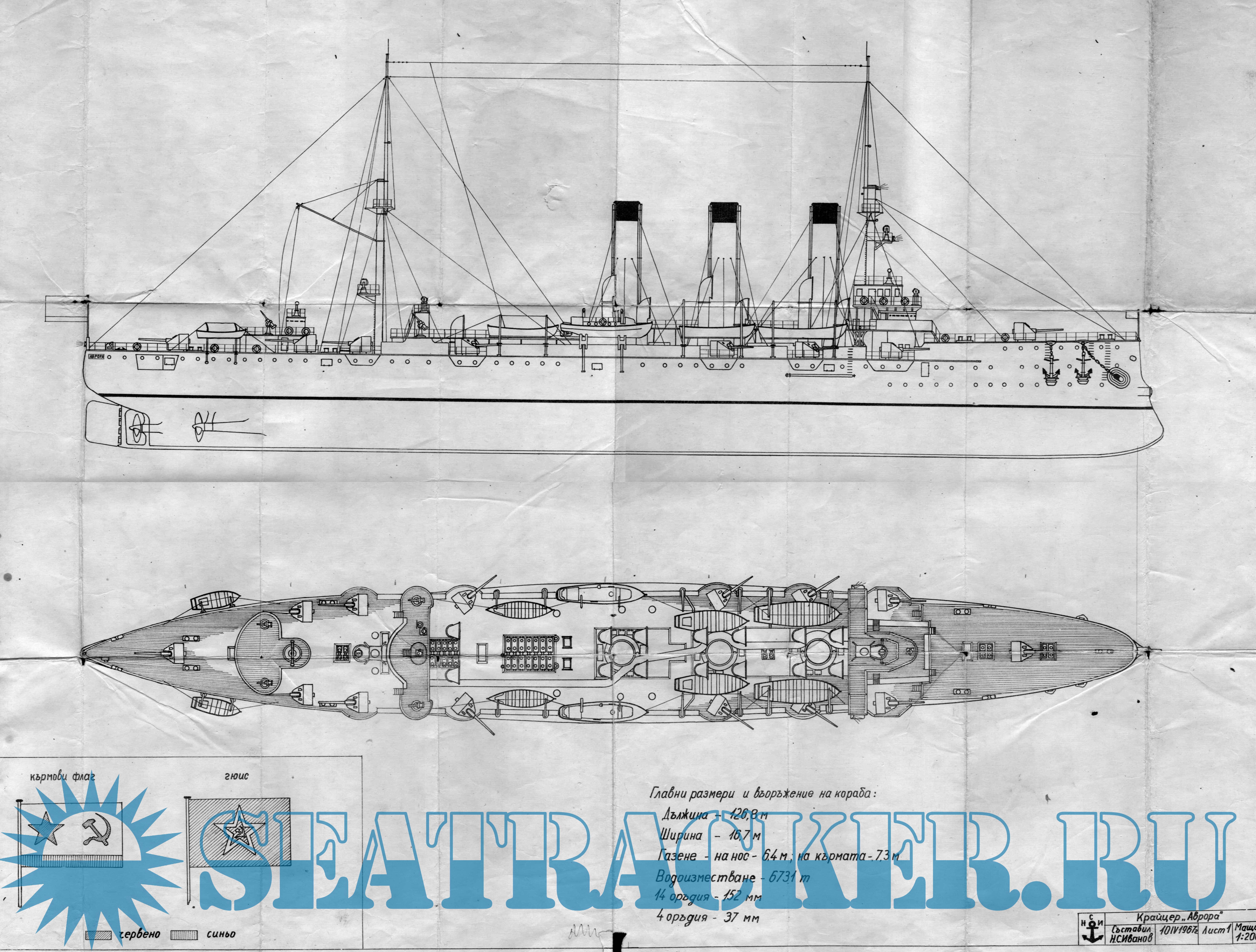 45 листов чертежей крейсера "Аврора" в масштабе 1:200
