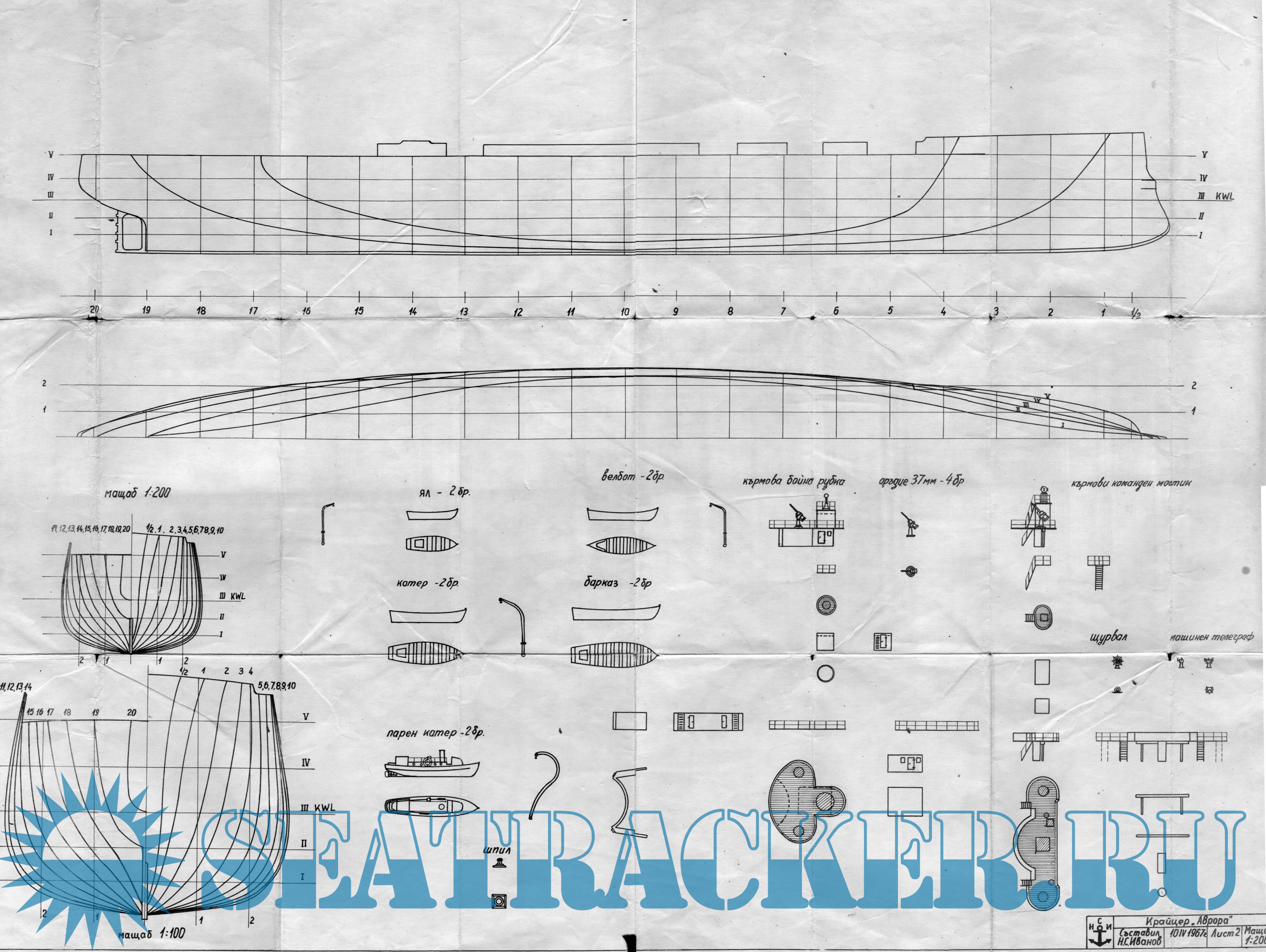Описание: 45 листов чертежей крейсера "Аврора" в масштабе 1:200